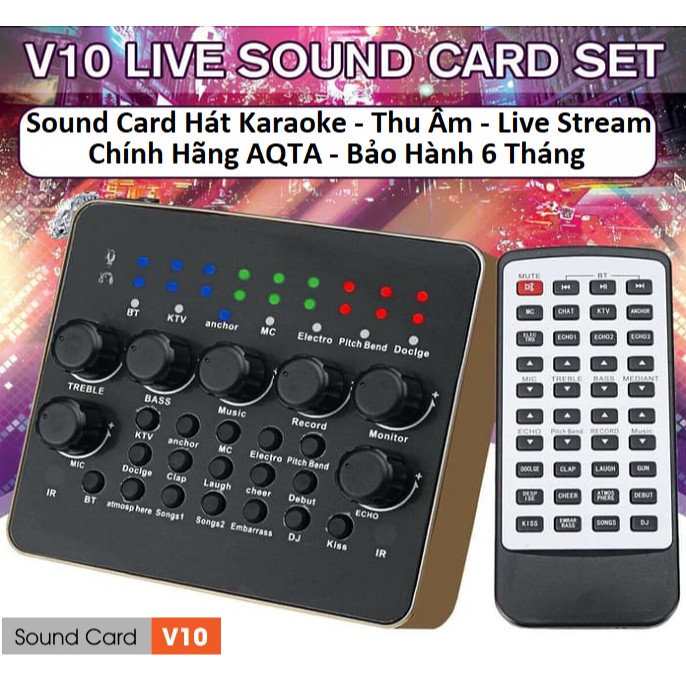 Sound Card V10 Chính Hãng AQTA Kèm Điều Khiển - AutoTune - Thu Âm Hát Live Stream - Hát karaoke Cực Hay Bảo Hành 6 Tháng