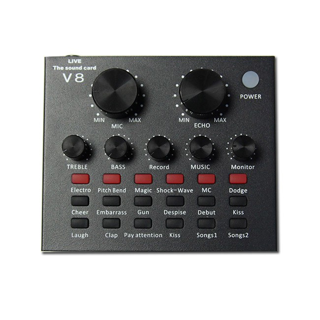 MÔ TẢ CHI TIẾT về Sound Card V8 card âm thanh hát karaoke livestream thu âmSound card V8 là sound card dòng phổ thông giá hợp lý cho các bạn sinh viên, các bạn đam mê ca hát muốn sở hữu cho mình một phòng thu mini tại nhà, với chi phí đầu tư khá thấp nhưng chất lượng thì khá cao đảm bảo cho việc thu âm, hát karaoke, hát live rất tốt, âm thanh được xử lý chuyên nghiệp giống như tại các phòng thu chuyên nghiệp.