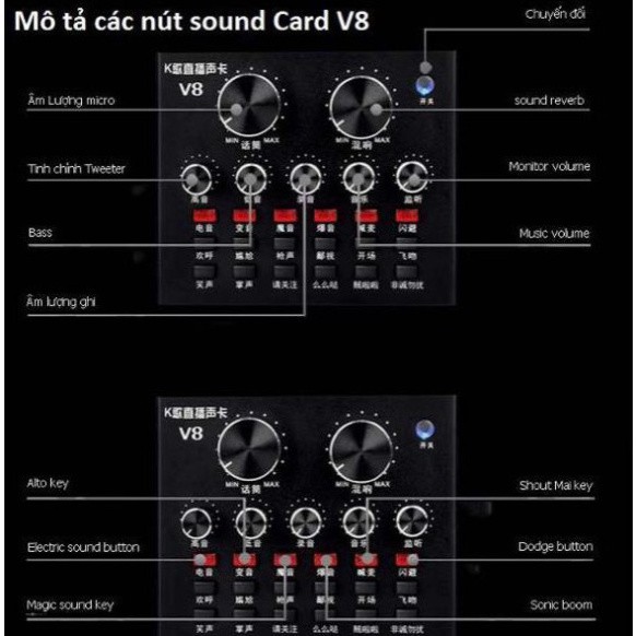 Máy tính & Laptop > Linh Kiện Máy Tính > Bo Mạch Âm Thanh || Sound card V8 có BLUETOOTH auto tune live livestream loại 1 (Mic AT100-BM 900-AQ220-S8-V8-V9-V10)Còn hàng