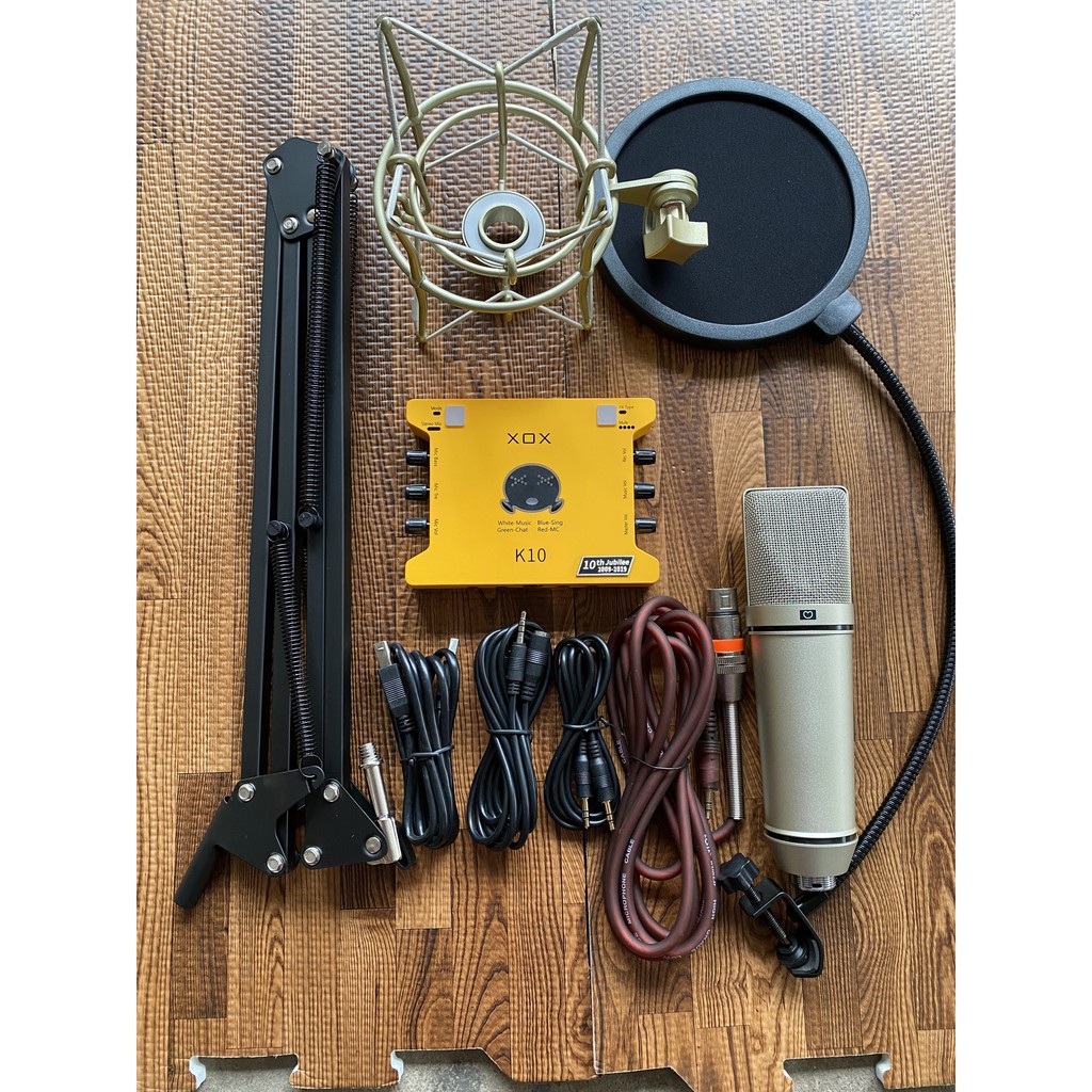 Giới thiệu Sound Card XOX K10 2020 Và Mic Thu Âm AQTA U87 Đầy Đủ Phụ Kiện Kẹp Mic , Màng Lọc Âm . Tặng Kèm Tai Nghe Kiểm Âm