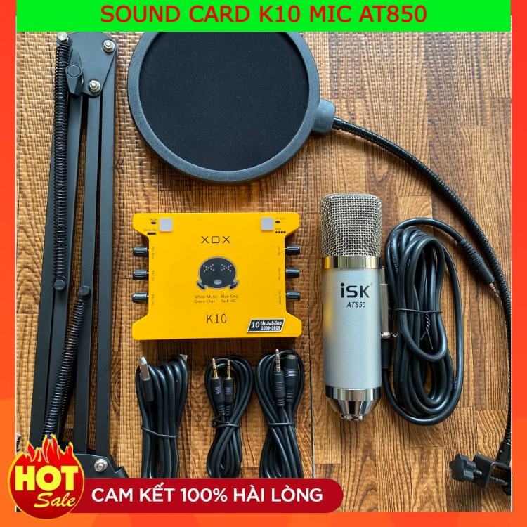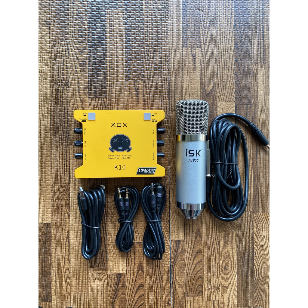 Sound Card XOX K10 2020 Và Mic Thu Âm ISK AT850 ⚡FREESHIP⚡ Đầy Đủ Phụ Kiện Kẹp Mic , Màng Lọc Âm . Tặng Kèm Tai Nghe