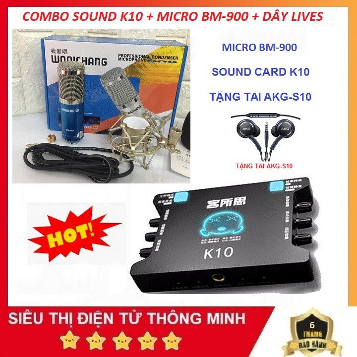 Combo Micro thu âm BM900 + Sound Card XOX K10 + Tặng Tai Nghe AKG-S10 chuyên dùng hát livestream, karaoke, thu âm với chất lượng rất tốt, hát cực hay không có đối thủ cùng giá tiền* Micro thu âm BM900 cho chất âm trong, độ nhạy cao cho những bài hát sống động hơn bao giờ hết.