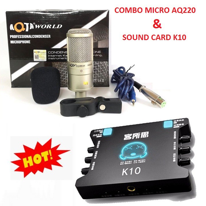 Sound Card XOX K10, Mic Thu Âm Livestream AQ220, Combo Cả Bộ Chính Hãng