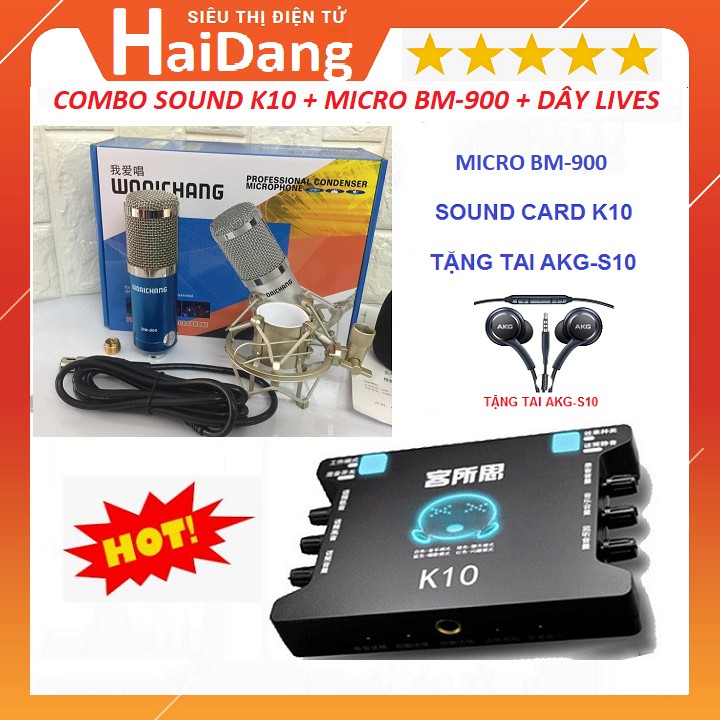 Combo Micro thu âm BM900 + Sound Card XOX K10 + Tặng Tai Nghe AKG-S10 chuyên dùng hát livestream, karaoke, thu âm với chất lượng rất tốt, hát cực hay không có đối thủ cùng giá tiền* Micro thu âm BM900 cho chất âm trong, độ nhạy cao cho những bài hát sống động hơn bao giờ hết.