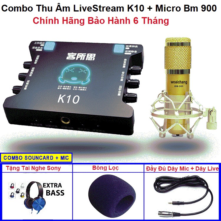 Sound Card XOX K10 Và Micro Thu Âm Live Stream Bm 900 Giá Rẻ Bảo Hành 6 Tháng Tặng Tai Nghe