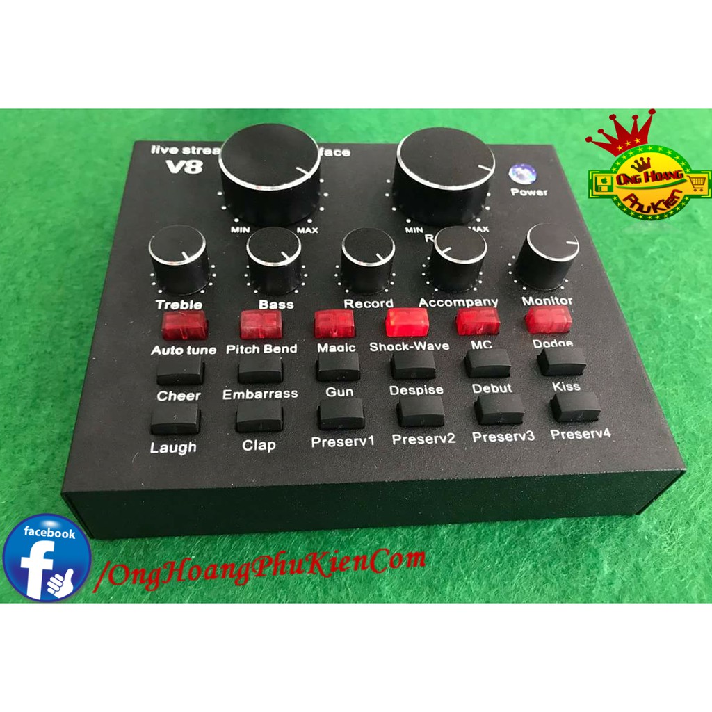 Sound card thu âm V8 là sản phẩm card âm thanh tương thích với nhiều thiết bị như smartphone, laptop, pc, máy tính bảng. Với tính năng làm méo giọng hát, thành giọng trẻ em, người già, Khả năng chèn các hiệu ứng âm thanh vào các đoạn thu như tiếng vỗ tay, tiếng hò reo, nhạc cổ vũ, tiếng chim kêu... với 12 hiệu ứng âm thanh, sẽ đem lại cho bạn trải nghiệm thu âm vô cùng thú vị.