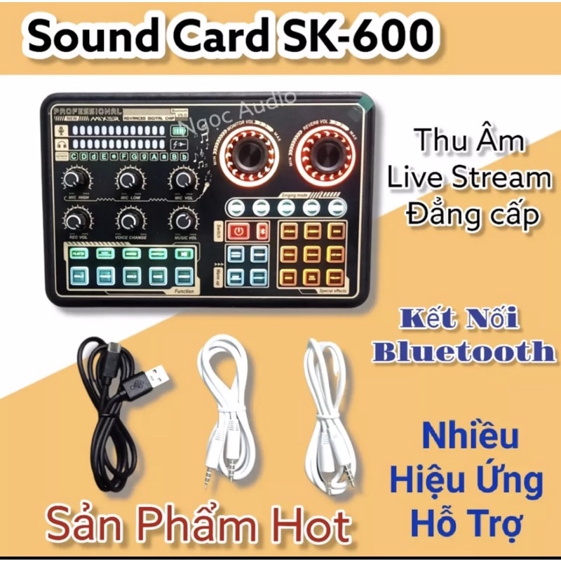 Soundcard K600 là thiết bị thu âm chuyên nghiệp rất phổ biến hiện nay để phát sóng trực tiếp trên các trang mạng xã hội: Facebook, Tiktok, Bigo live...