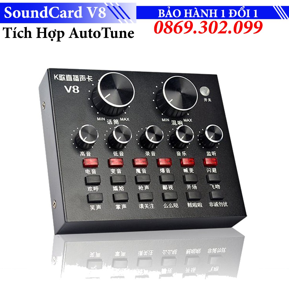 [Mã ELHACE giảm 4% đơn 300K] SoundCard Thu Âm Auto Tune Live Stream Hát Karaoke V8