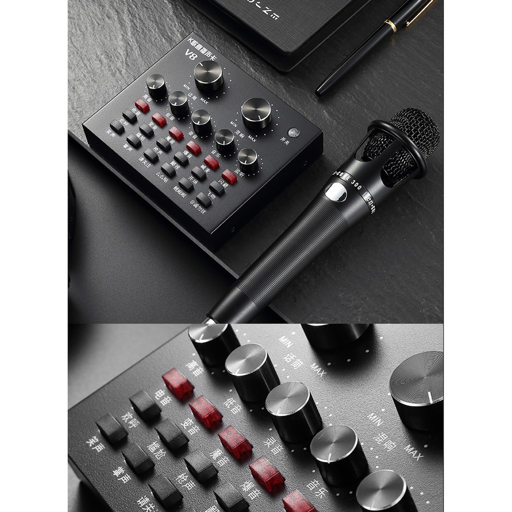 Sound card hiểu nôm na là “Card” Âm Thanh tức là thiết bị dùng để thu nhận, xử lý và phát tín hiệu âm thanh thông qua 1 thiết bị ngoại vi khác. Âm thanh trong máy tính là ở dạng digital (kỹ thuật số) muốn truyền tốt được ra ngoài cần có một thiết bị chuyển digital qua analog (tín hiệu băng tần) vậy nên Sound card thu âm V8 giúp máy bạn thực hiện điều đó.card thu âm V8 là sản phẩm card âm thanh tương thích với nhiều thiết bị như smartphone, laptop, pc, máy tính bảng. Với tính năng làm méo giọng hát, thành giọng trẻ em, người già, Khả năng chèn các hiệu ứng âm thanh vào các đoạn thu như tiếng vỗ tay, tiếng hò reo, nhạc cổ vũ, tiếng chim kêu... với 12 hiệu ứng âm thanh, sẽ đem lại cho bạn trải nghiệm thu âm vô cùng thú vị.