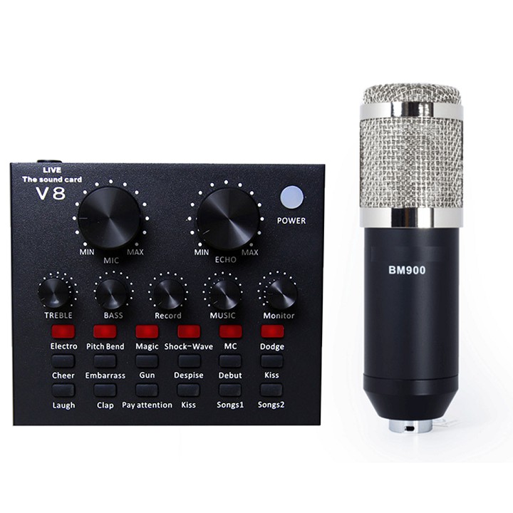 Soundcard V8 Bluetooth, Micro Karaoke BM 900 - Tai Nghe XB-450 Hát Karaoke Livetream