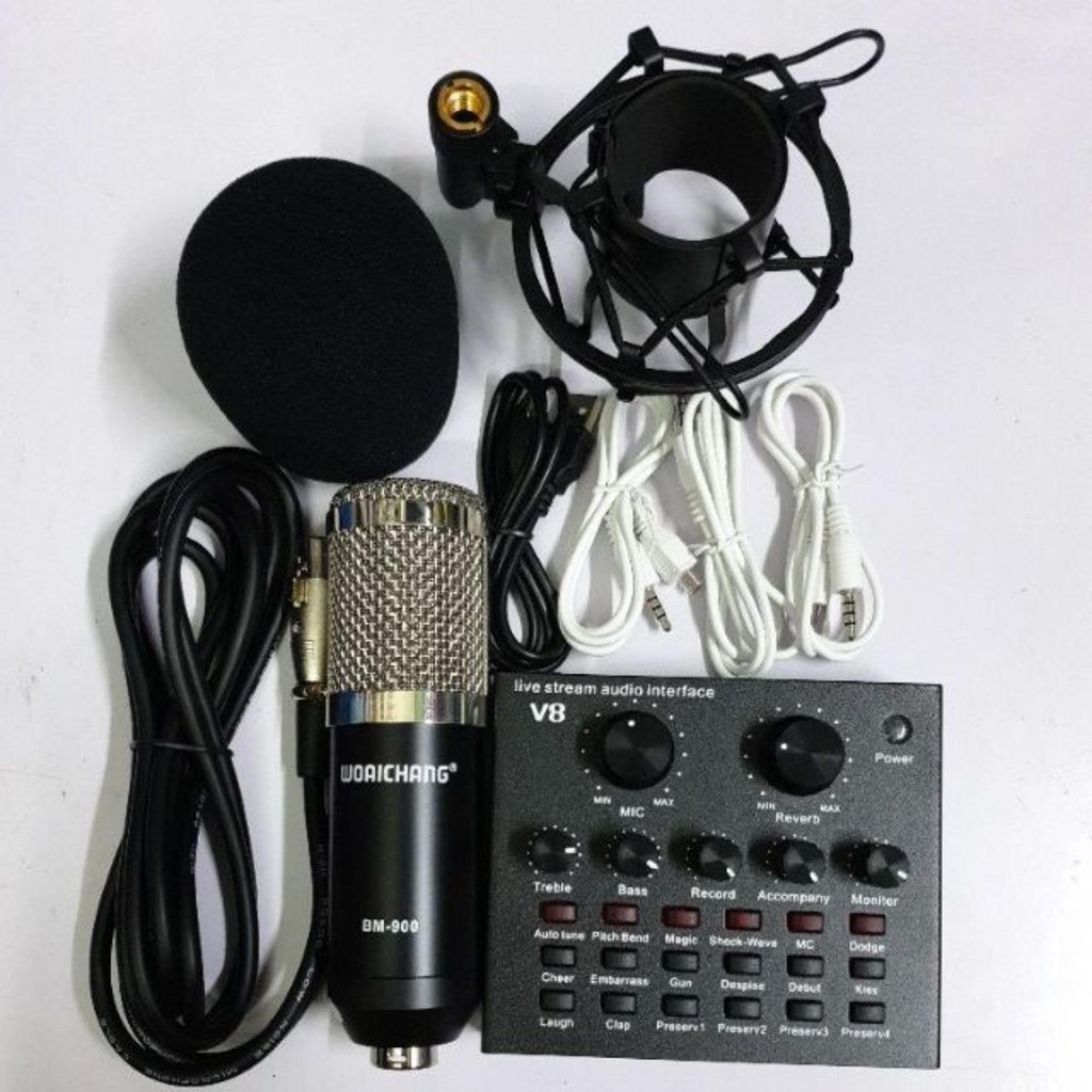 Thiết Bị Âm Thanh > Micro thu âm || Soundcard V8 Chính Hãng Có Bluetooth + Mic Karaoke Livetream BM 900 Cao Cấp, Có AutoTune Chuẩn Phòng Thu (Tặng Tai Nghe)Còn hàng