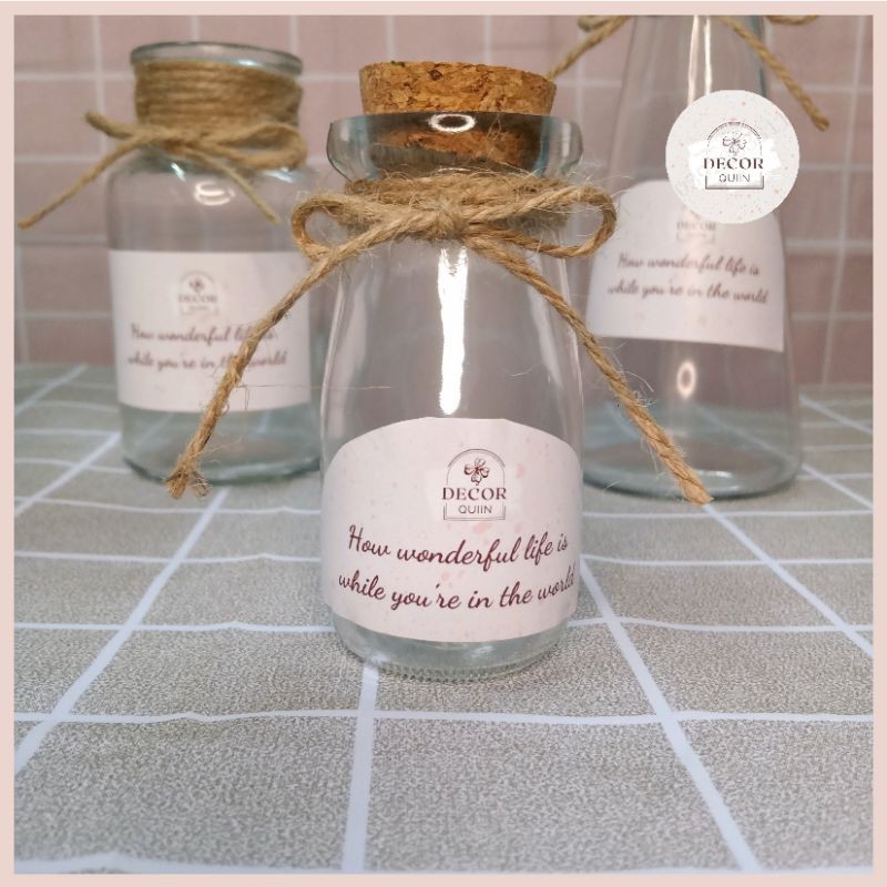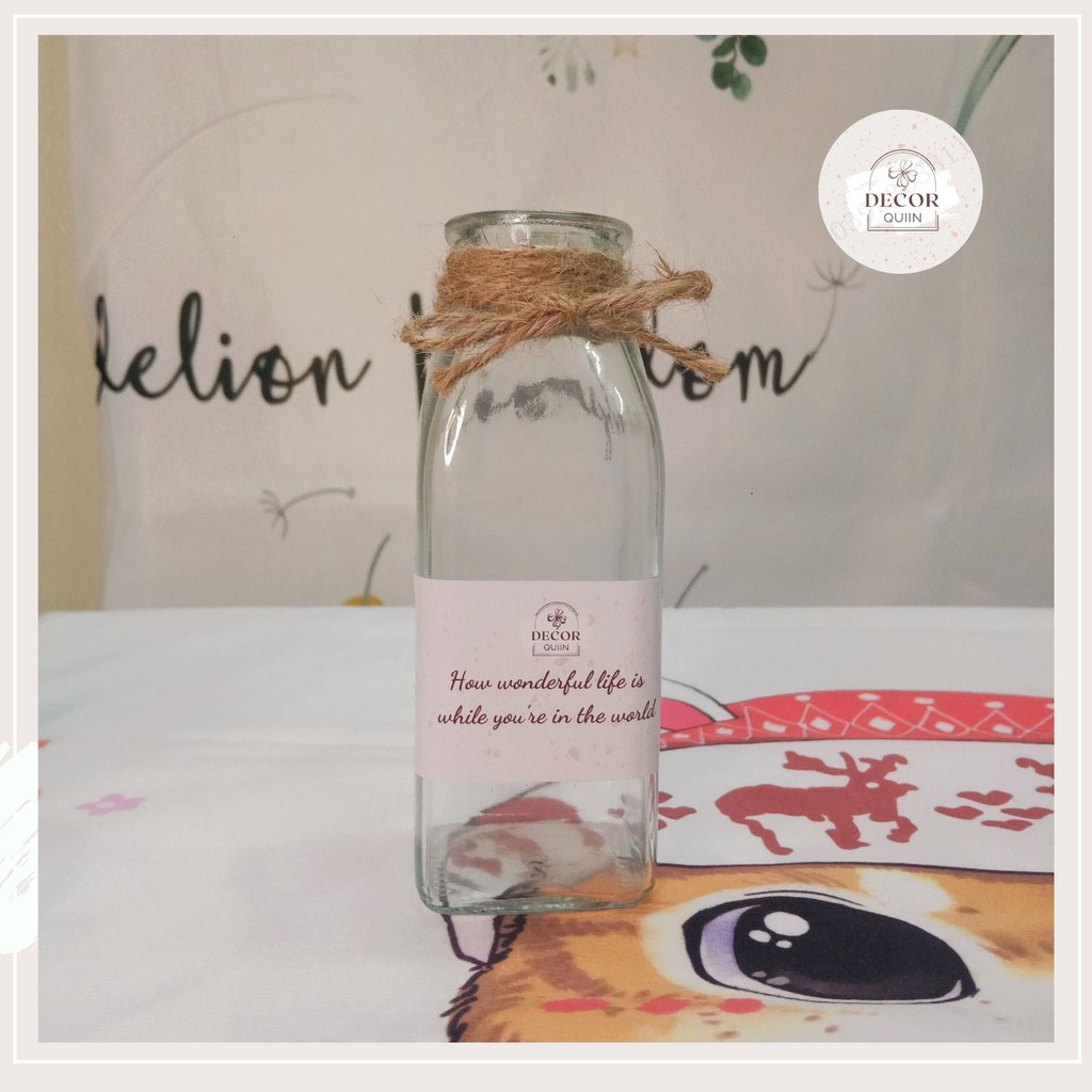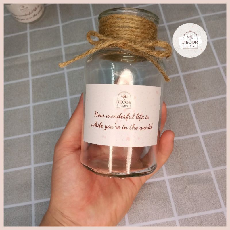 ❤ Combo gồm: Lọ thủy tinh + sticker dán thân bình cắm trong bình + dây thừng gai quấn miệng bình