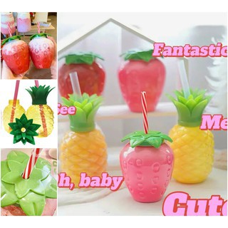 Bình nước nhựa hình quả dâu tây và trái dứa kèm ống hút\siêu xinh 500mlBÌNH CÓ ỐNG HÚT