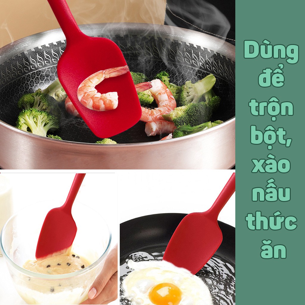Thiết kế vừa tay cầm, có thể dùng để trộn bột, vét bột, đánh trứng, xúc... cùng với chất liệu silicon chịu nhiệt, an toàn là những lý do mà bạn nên sở hữu chiếc spatula này.Phân loại ngẫu nhiên sẽ giao màu ngẫu nhiên có thể không có trong hình ảnh