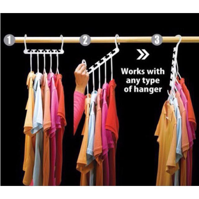 Giải pháp cực hay cho những mẹ có tủ quần áo nhỏ, mà số lượng quần áo lại quá nhiều. Gập lại thì dễ bị nhăn, mà treo lên thì ko đủ chỗ. Với bộ 8 móc treo này, có thể tchiếc quần áo các loạiSử dụng thì cực kỳ đơn giản, các mẹ treo móc lên bình thường, mắc quần áo vô. Rồi thả 1 bên xuống. Vậy là quá gọn gàng luôn. Tủ đồ ko cần rộng, vẫn đủ chỗ treo quần áo cho cả nhà.
