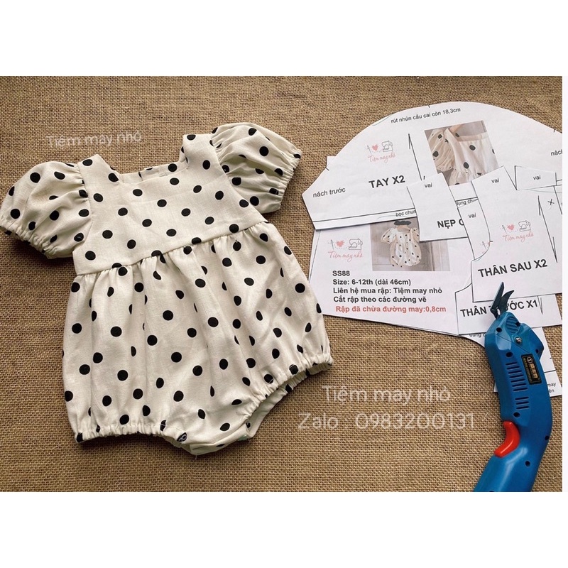 SS88_Rập giấy may romper cổ vuông sơ sinhLƯU Ý : Rập giấy là bản vẽ trên trên giấy để mọi người tự may đồ chứ không phải quần áo đã may nên mọi người cân nhắc trước khi mua