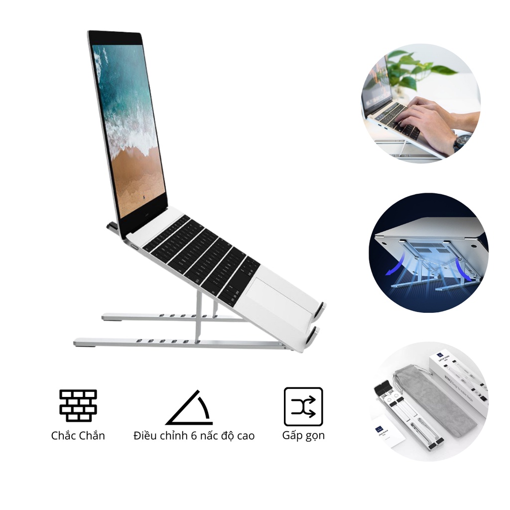 Máy tính & Laptop > Phụ Kiện Máy Tính > Đế Tản Nhiệt || Stand/Đế Nhôm Kê Macbook, Laptop Tản Nhiệt Có Thể Gấp Gọn Và Điều Chỉnh 6 Nấc Độ Cao WIWUCòn hàng