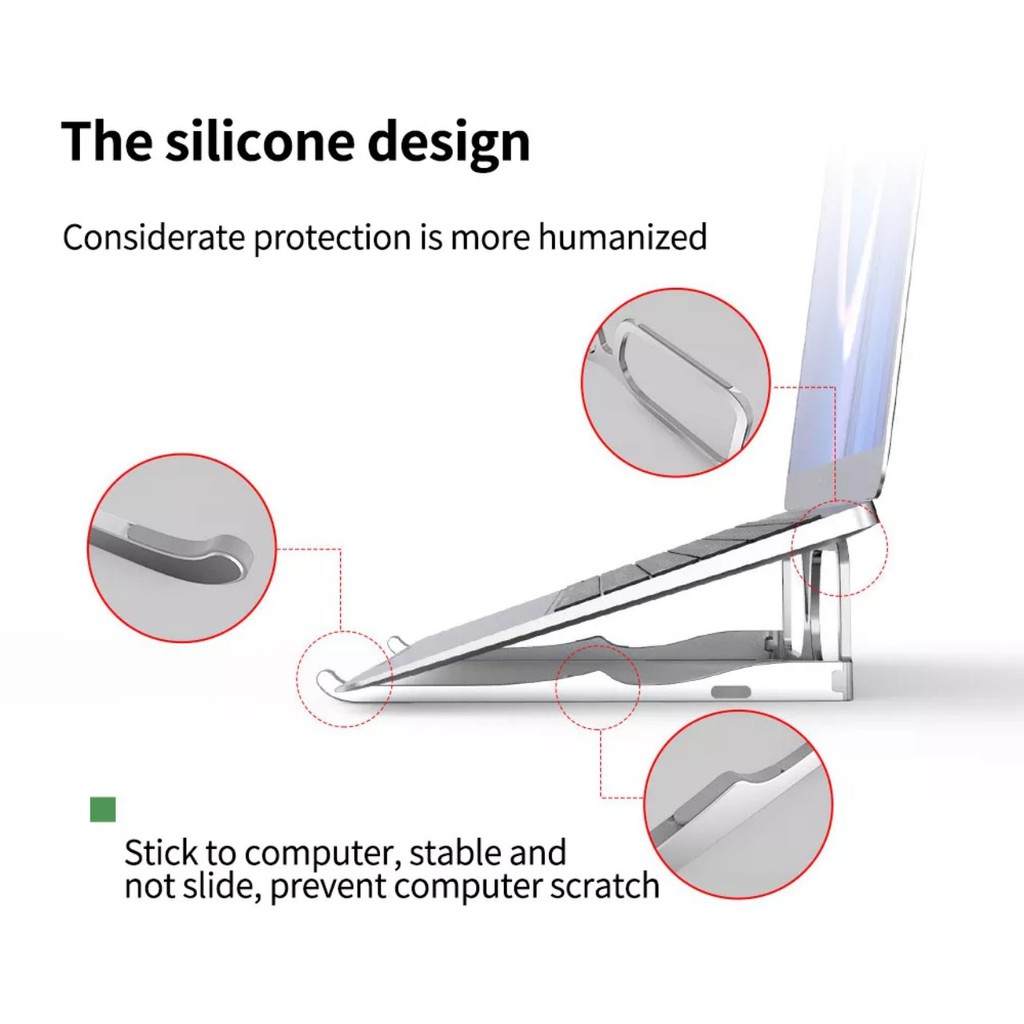 Chân đệm được lót silicon tại các vị trí tiếp xúc chống trượt giúp cố định trên mặt phẳng một cách chắc chắn. Bạn có thể yên tâm khi đặt thiết bị của mình lên mà không sợ bị đổ ngã hay trơn trượt.