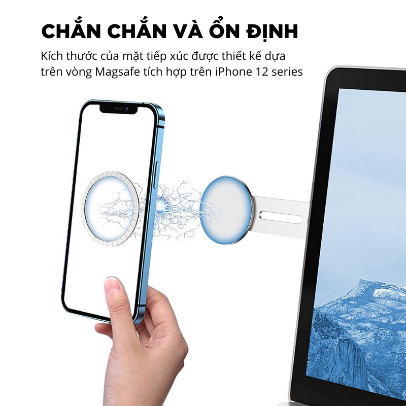 - Nam châm hít từ tính chắc chắn, ổn định được thiết kế cực kỳ đặc biệt dành riêng cho iPhone 12 và 13 series và các ốp có tương thích Magsafe. Hít rất chặt nên khách có thể yên tâm sử dụng mà không lo lắng iPhone của bạn sẽ bị rơi rớt trong quá trình sử dụng.