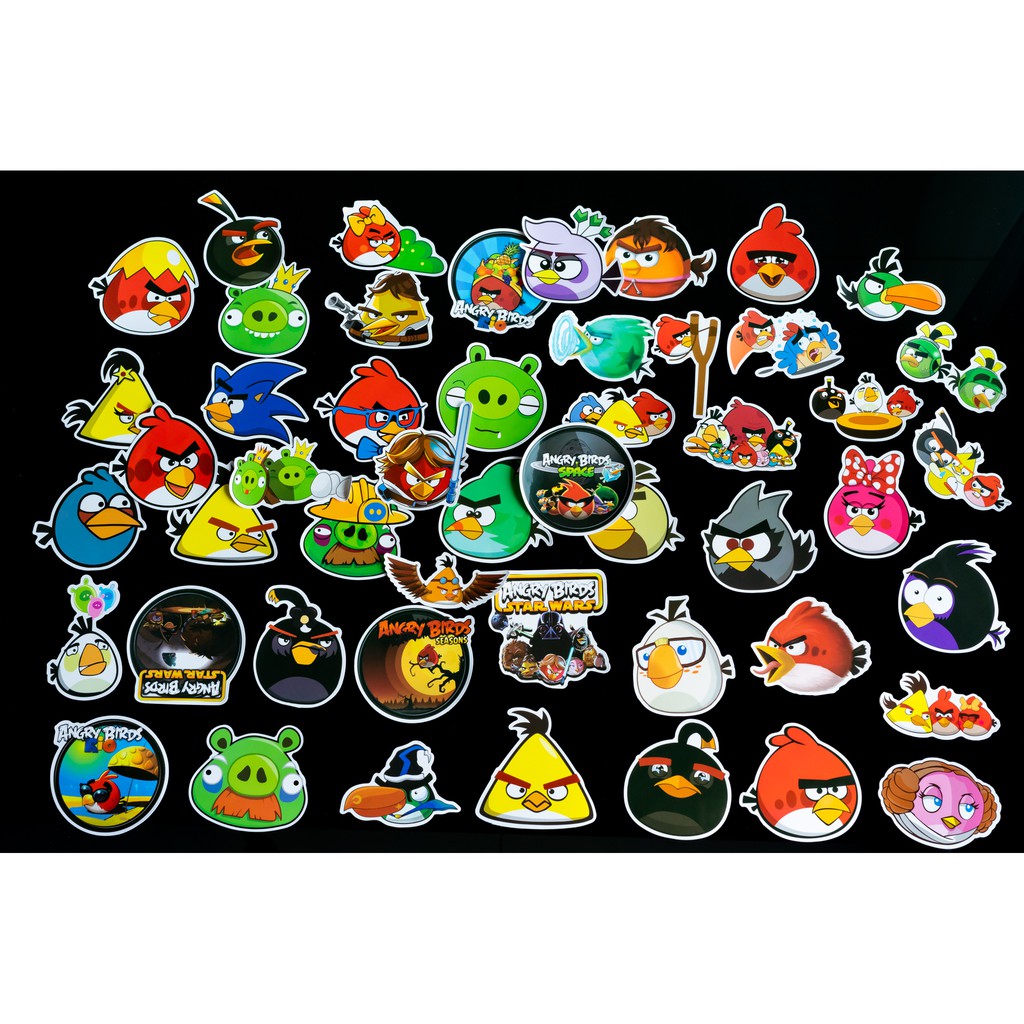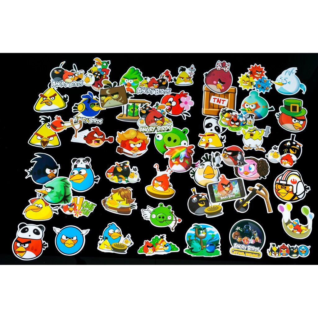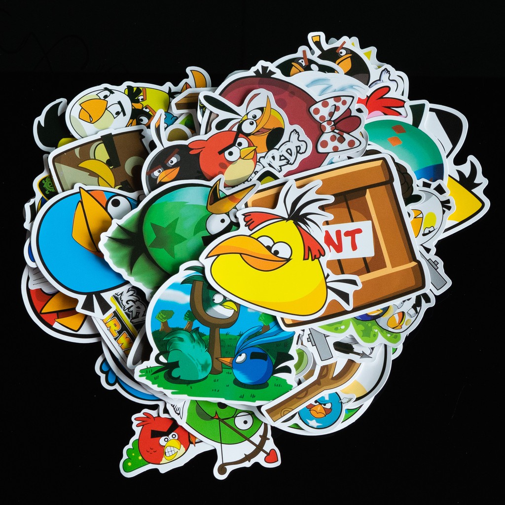 Sticker Angry Birds chống nước lâu phai trang trí mũ bảo hiểm, đàn, guitar, ukelele, macbook, laptopKích thước các hình khoảng 6cm - 8cm