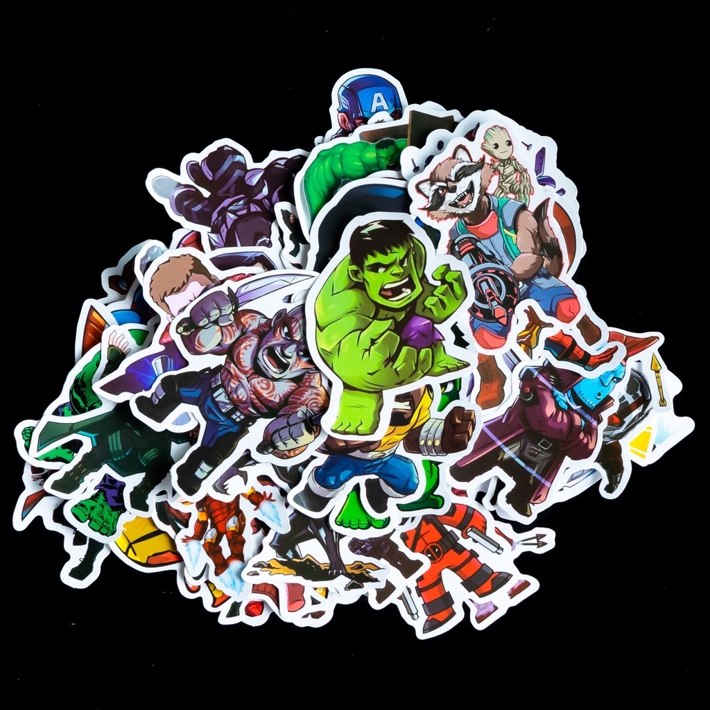 Sticker Avengers chống nước lâu phai trang trí mũ bảo hiểm, đàn, guitar, ukelele, macbook, laptopKích thước các hình khoảng 6cm - 8cm