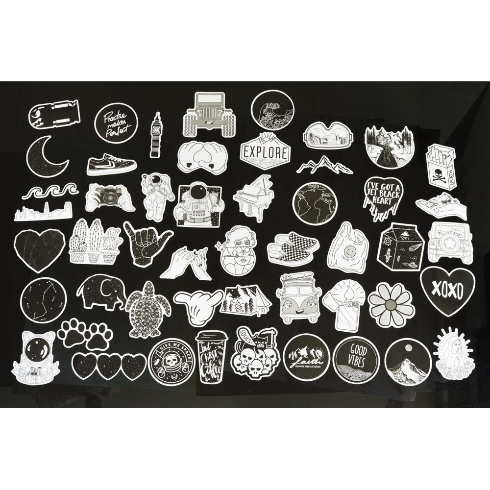 Bộ sticker black white mẫu mới 2020 trang trí mũ bảo hiểm, xe máy, xe đạp, đàn guitar, ukulele, vali, điện thoại, laptop