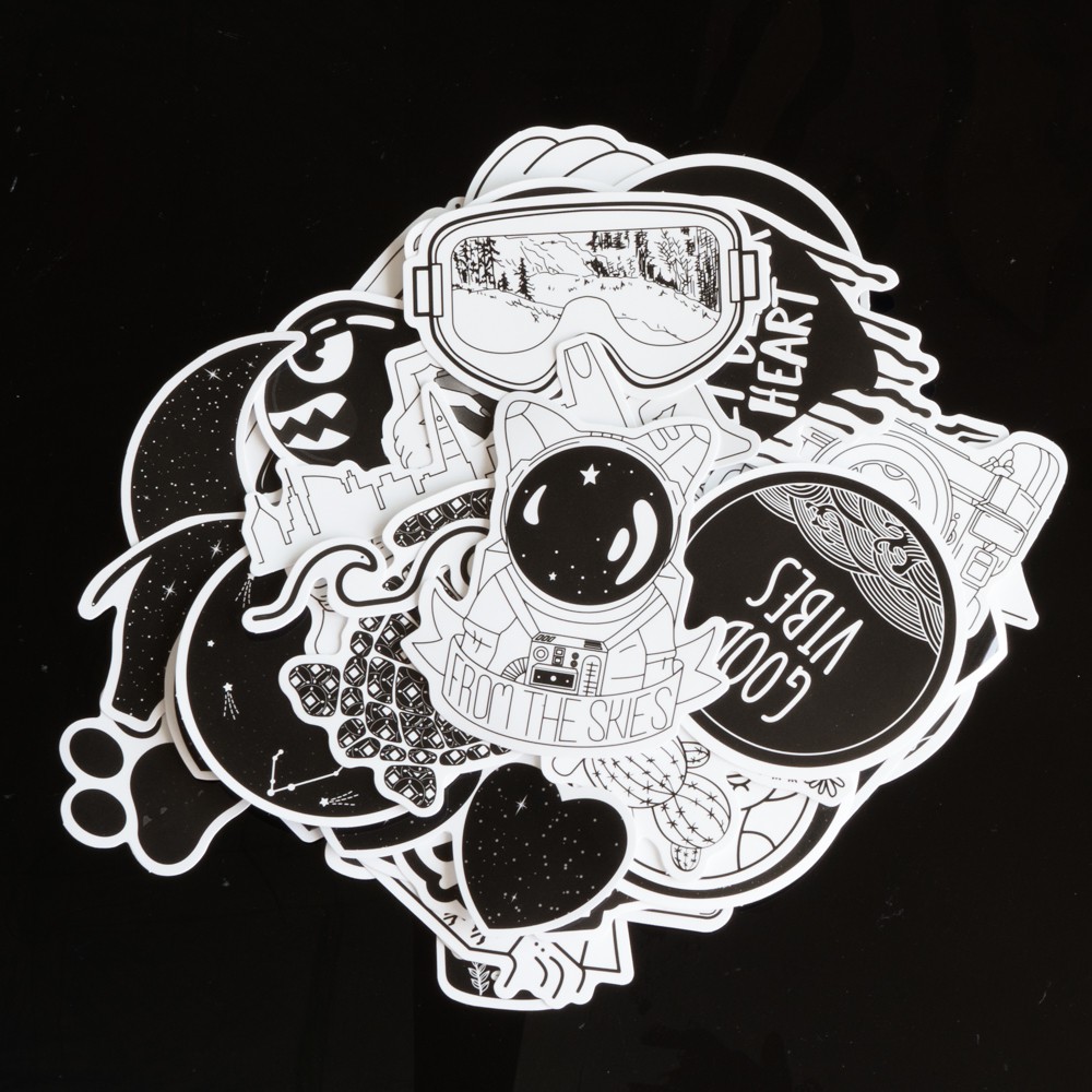 Bộ sticker black white mẫu mới 2020 trang trí mũ bảo hiểm, xe máy, xe đạp, đàn guitar, ukulele, vali, điện thoại, laptop,...- Chất liệu tốt có phủ một lớp PVC chống thấm nước, chống phai màu, giúp giữ màu bên, lâu.