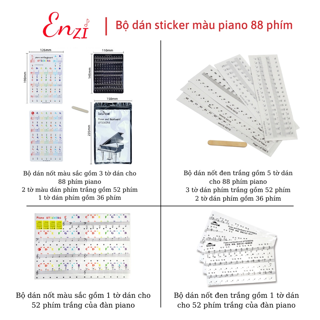Sticker dán nốt bàn phím đàn piano organ dùng cho tất cả các phím đàn 88, 76, 61, 54, 36 phím Enzi