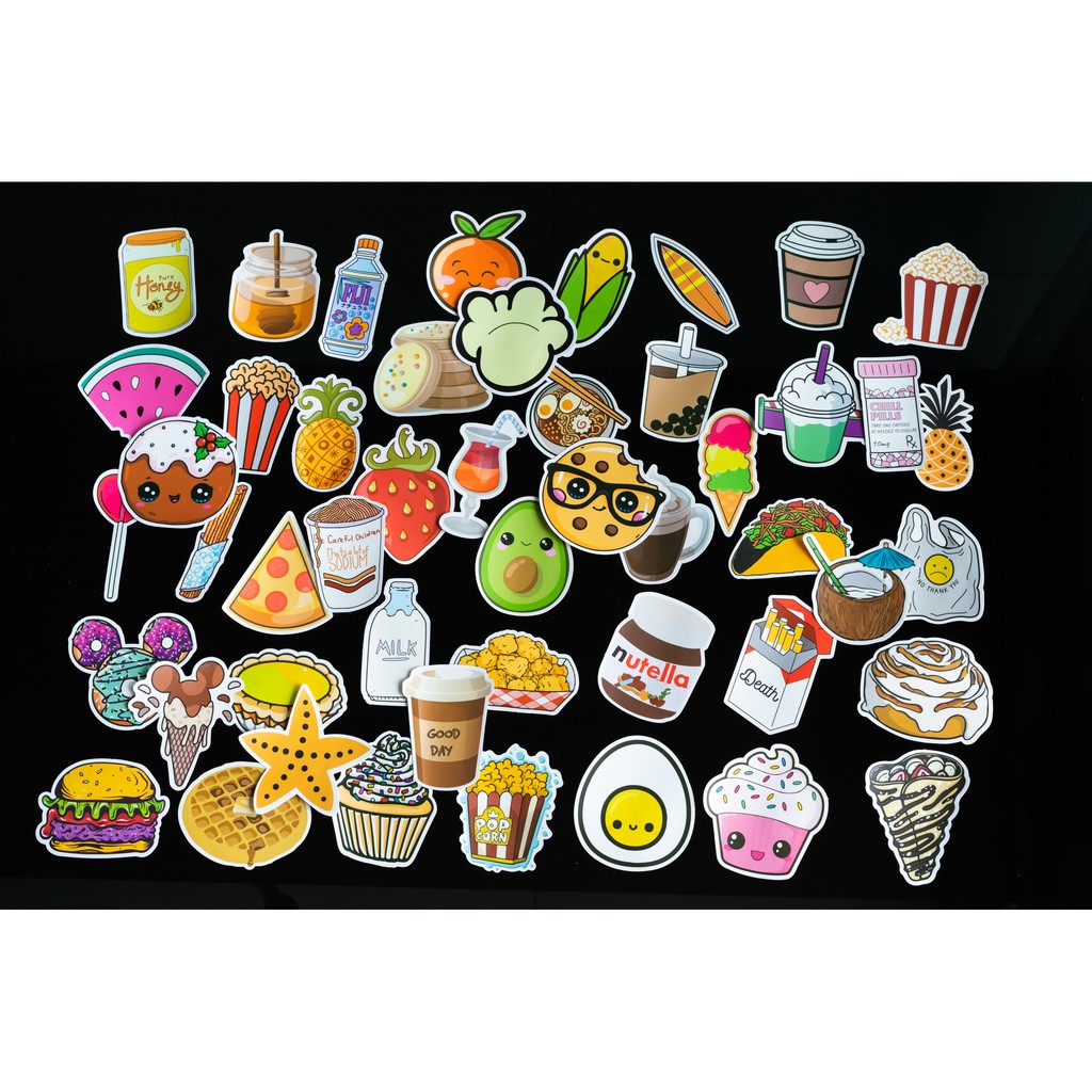 Sticker Food-thức ăn cute, hình dán chống nước lâu phai trang trí mũ bảo hiểm, đàn, guitar, ukelele, macbook, laptopKích thước các hình khoảng 6cm - 8cm