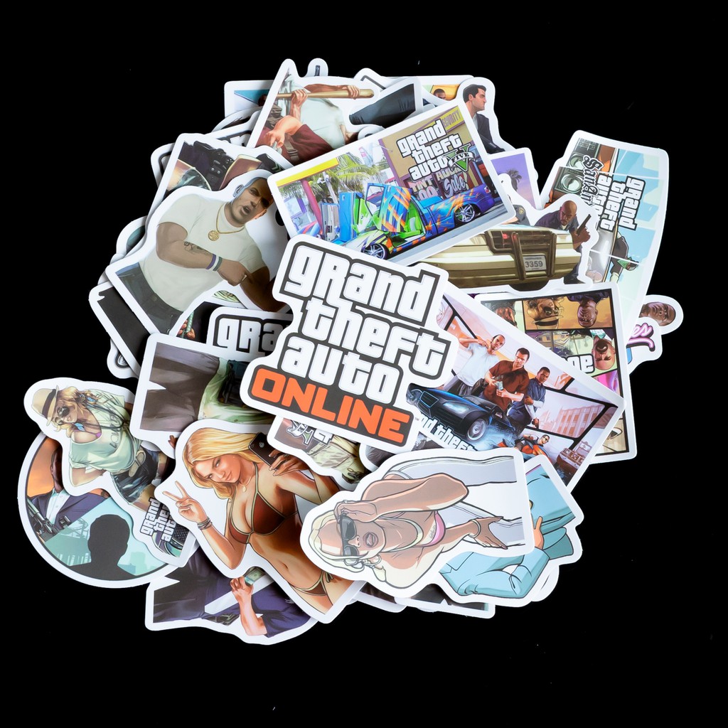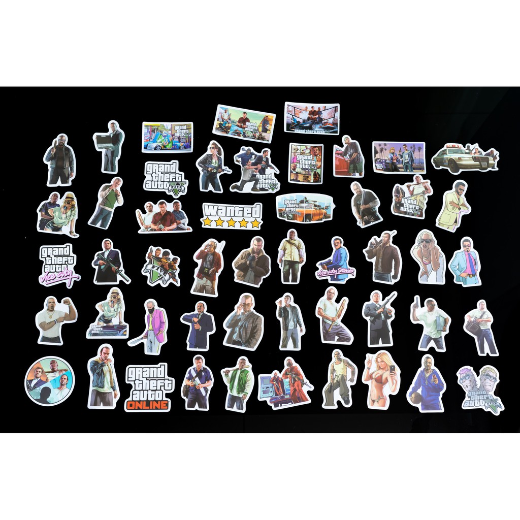 Sticker GTA V bộ 50 miếng chống nước lâu phai trang trí laptop, mũ bảo hiểm, đàn, guitar, ukelele, macbook, điện thoại