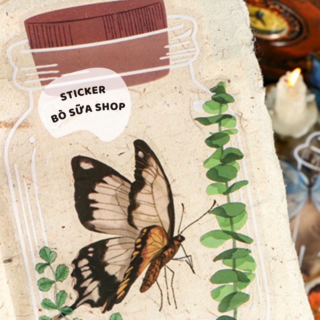 Sticker hình bướm hoa nấm lọ thủy tinh phong cách vintage stickerbosuashop