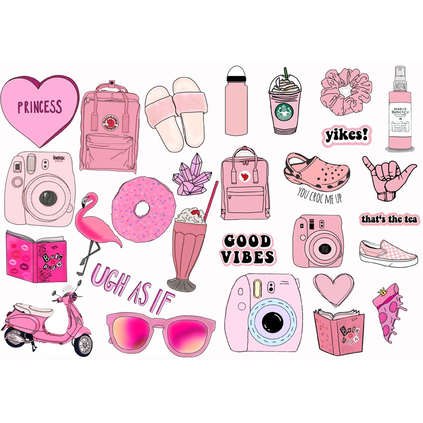 Sticker pink màu hồng trang trí vali, mũ bảo hiểm, guitar, ukelele, laptop, macbook, điện thoại… ảnh dán màu hồng