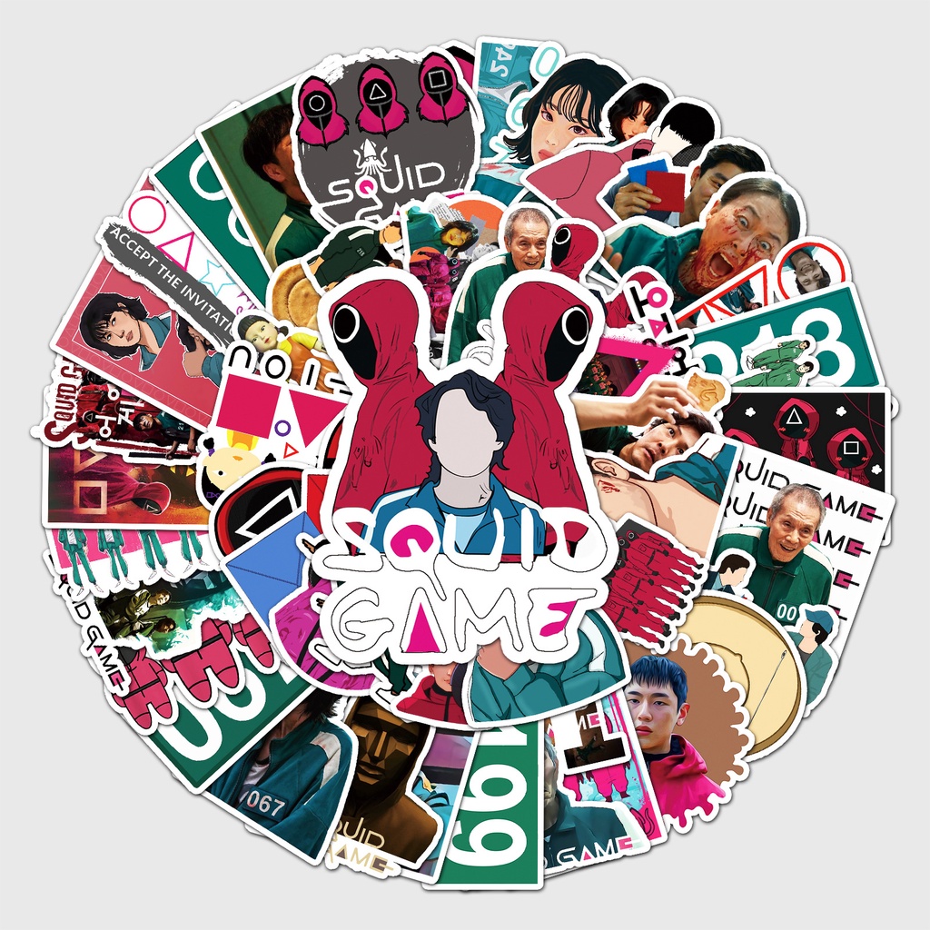 Sticker squid game dán vali, nón bảo hiểm, đàn, guitar, ukulele, laptop, điện thoại nhiều kiểu chống nước lâu phai