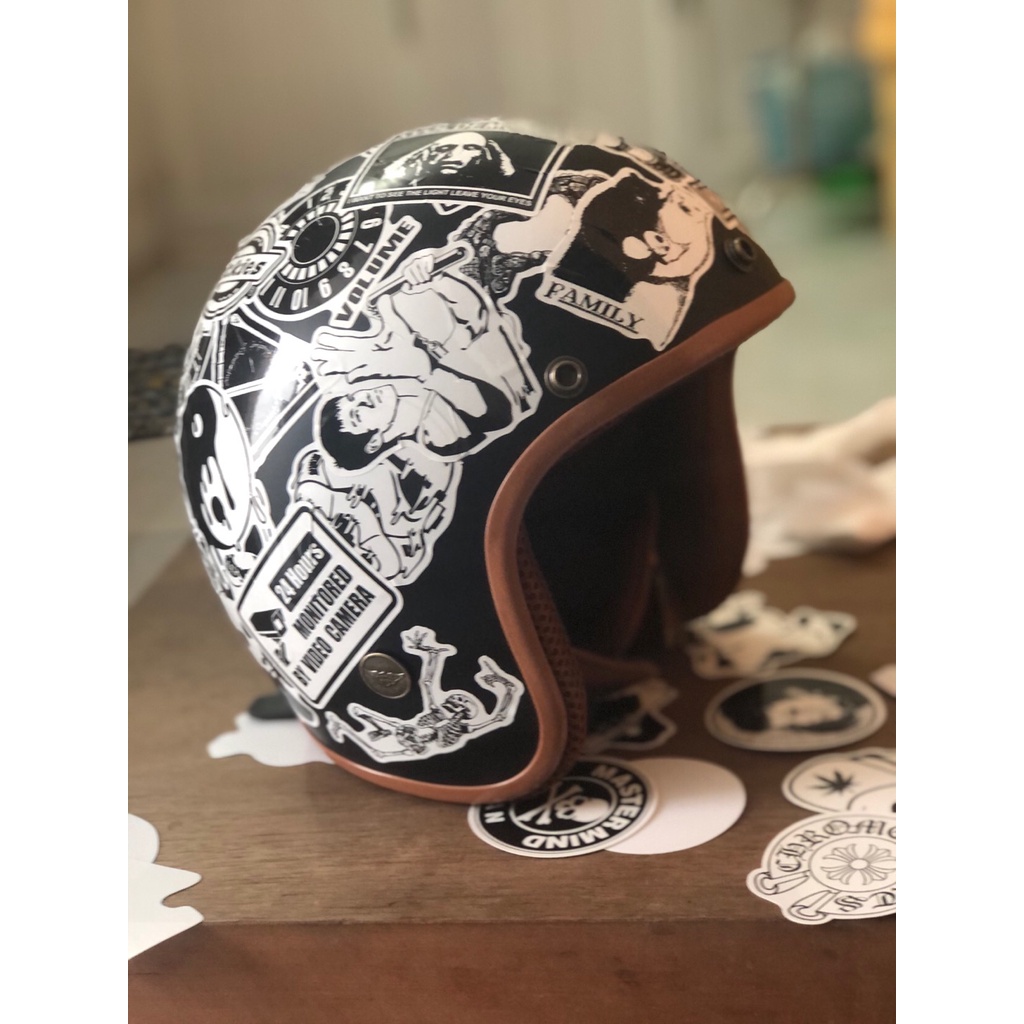 Sticker còn gọi là decal, tem, hình dán dùng để trang trí lên tất cả bề mặt cứng: mũ bảo hiểm, laptop, xe đạp, xe máy, ô tô, vali, tường, cửa nhà, tủ lạnh, tủ quần áo...