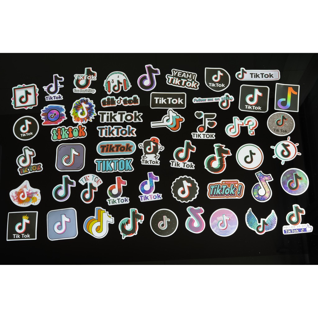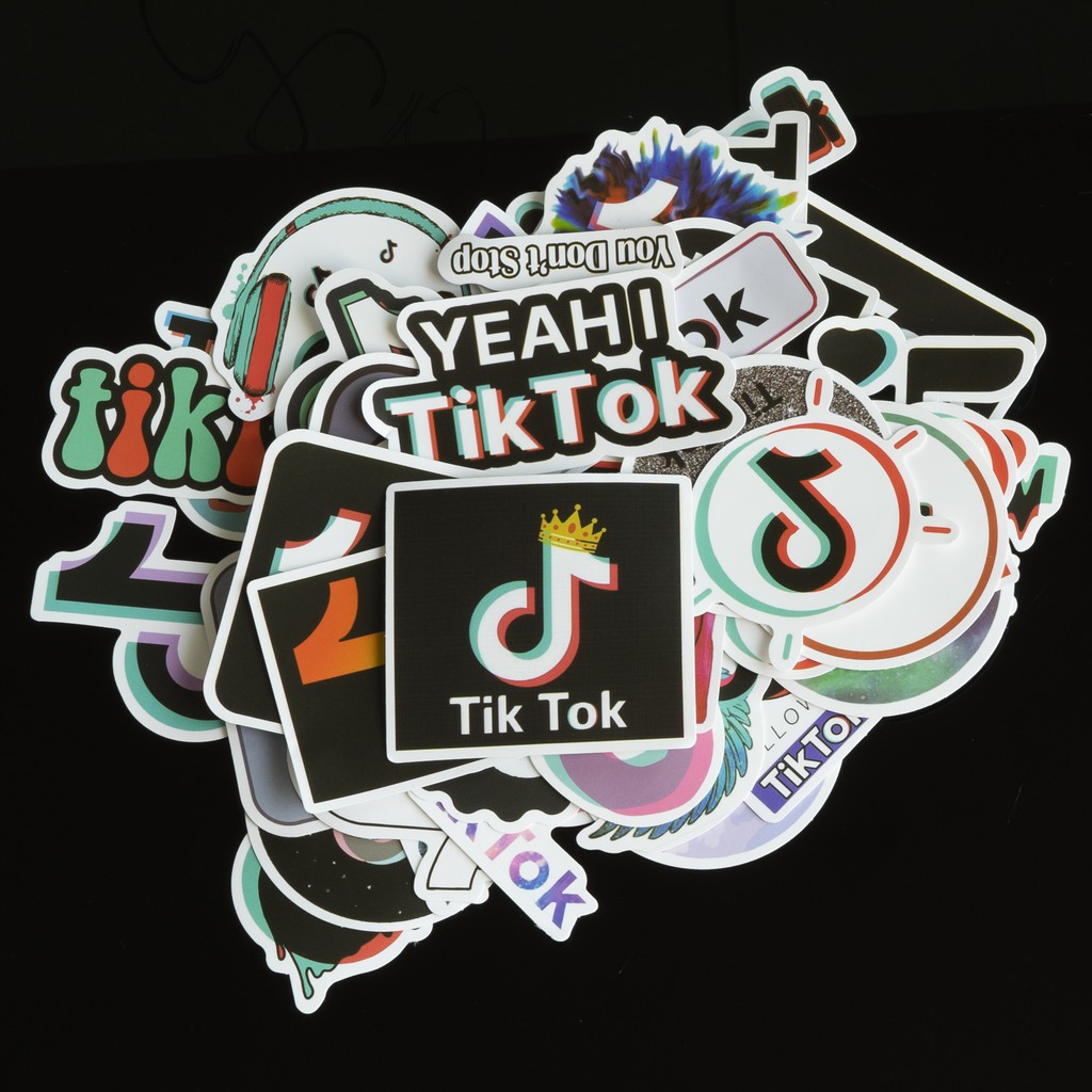 Bộ sticker TIKTOKK mẫu mới 2020 trang trí mũ bảo hiểm, xe máy, xe đạp, đàn guitar, ukulele, vali, điện thoại, laptop