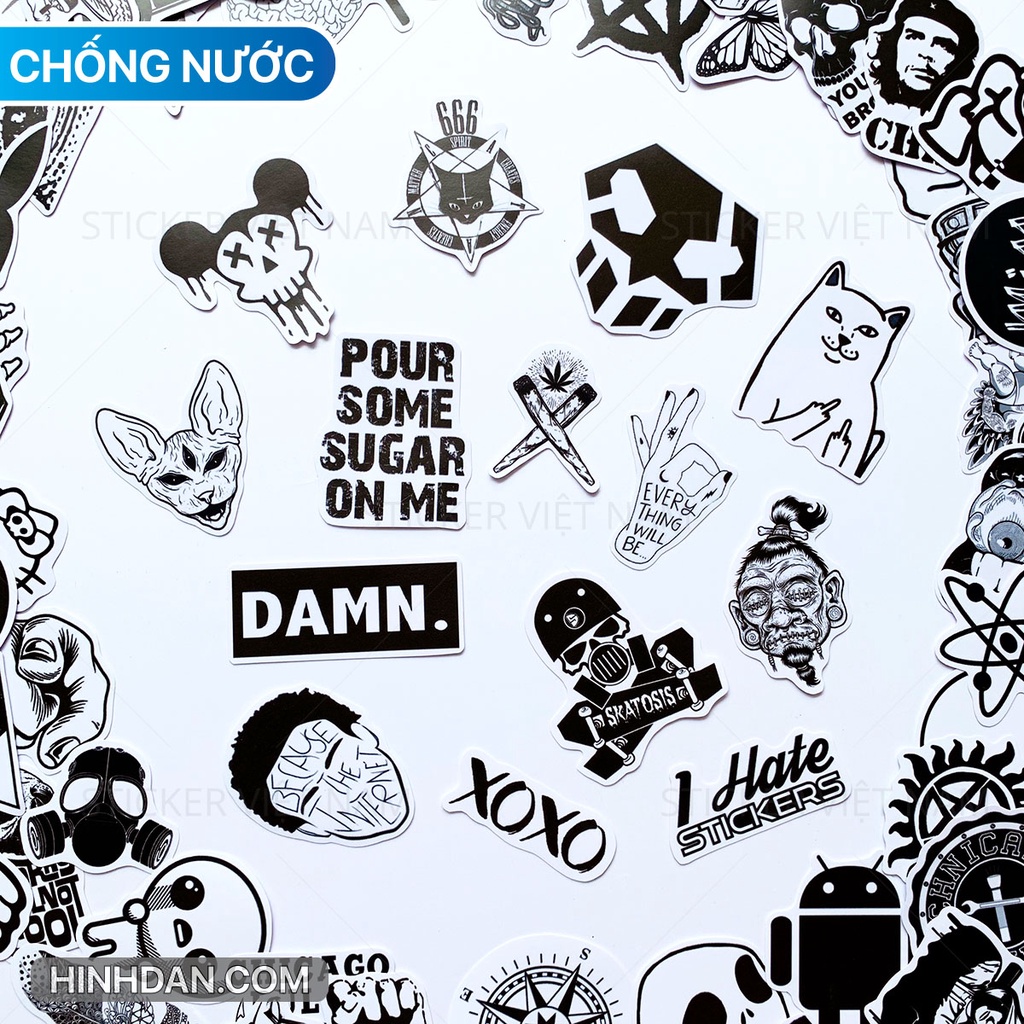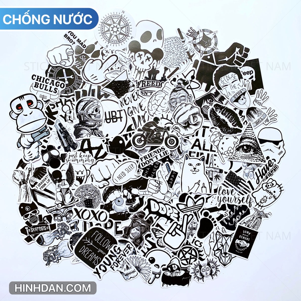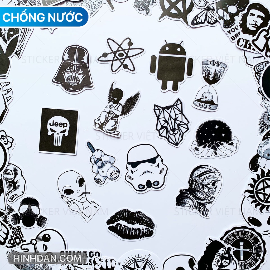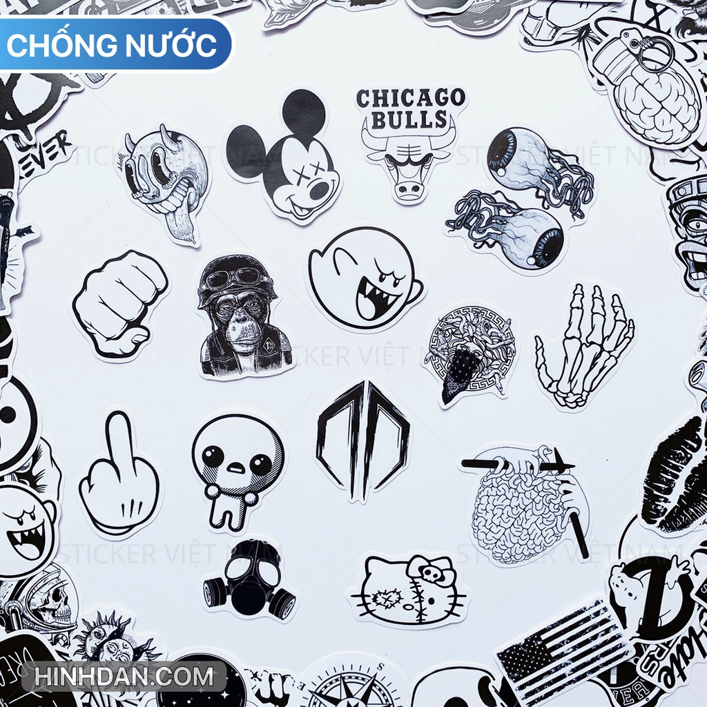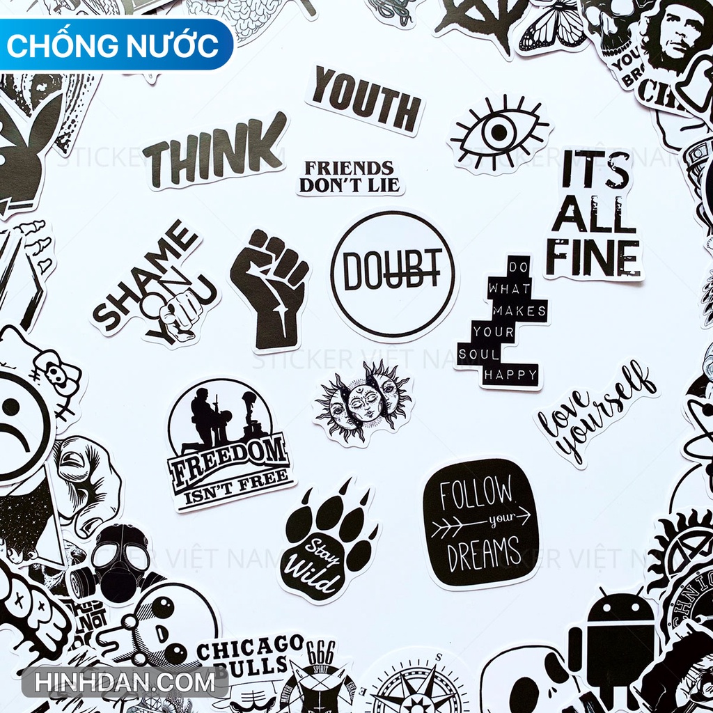 Sticker TRẮNG ĐEN - Black White ngầu Chống Nước Trang Trí Va Li, Xe, Laptop, Nón Bảo Hiểm, đàn guitar
