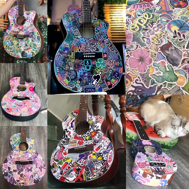 Giới thiệu Sticker trang trí cho đàn guitar - loại không ngấm nước - inbox lựa mẫu