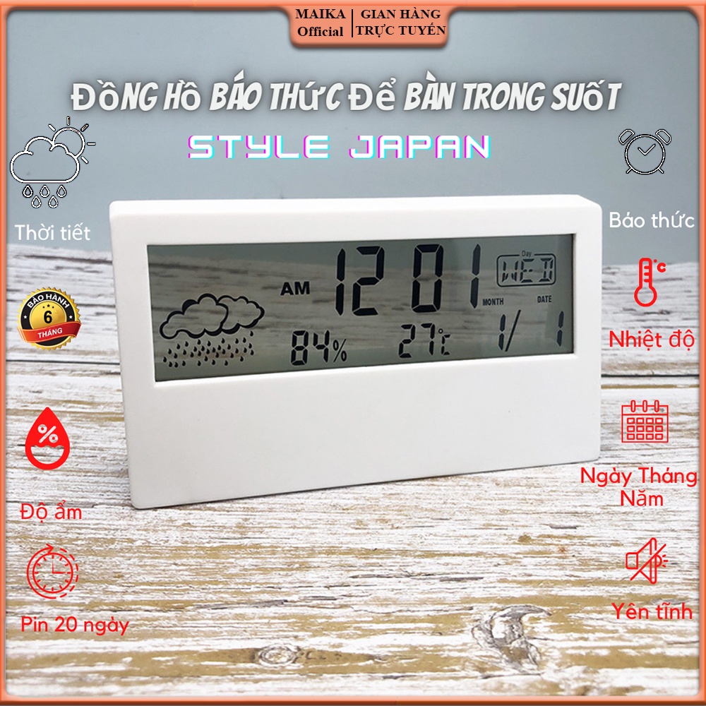 - Đồng hồ báo thức trong suốt tiết kiệm pin và thân thiện với môi trường, có chức năng lưu thời gian khi tắt nguồn.