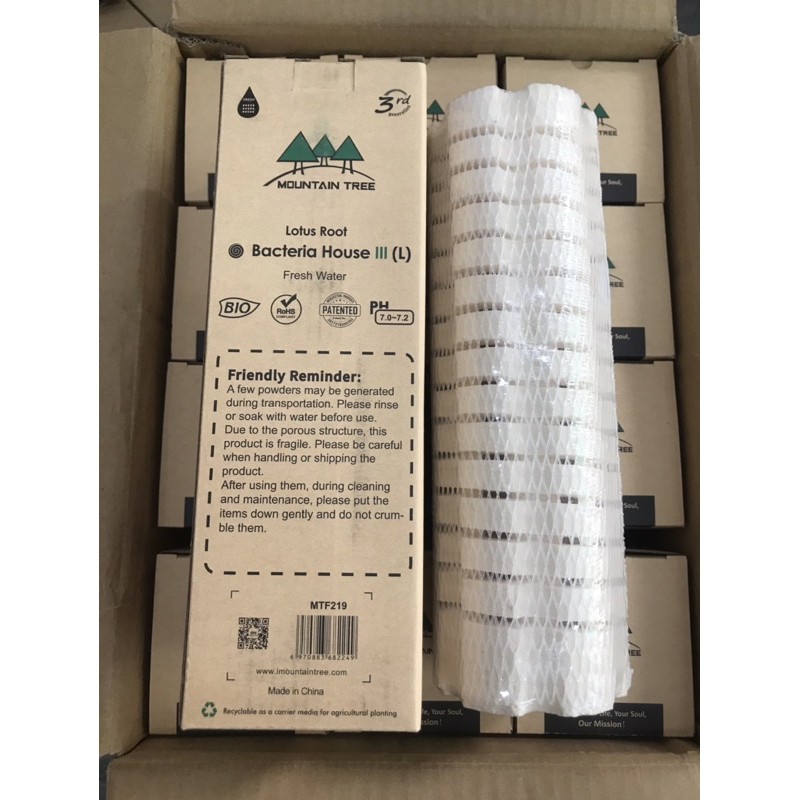 Mỗi thanh sứ được bảo vệ trong 1 túi lưới, và được kèm theo 1 gói vi sinh