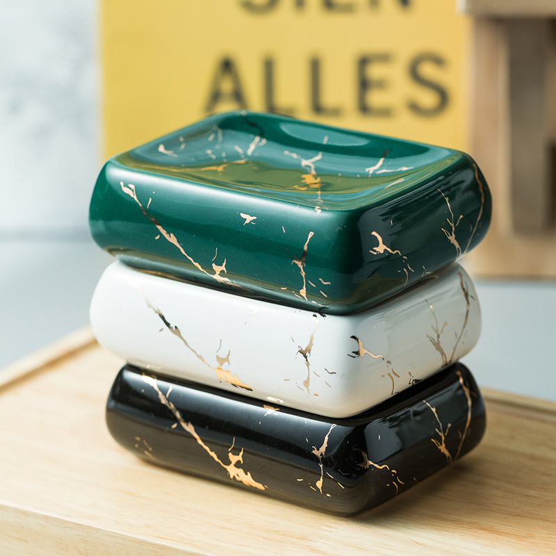 [Sứ sáng bóng] Khay chữ nhật đựng xà bông nhà tắm bằng sức vân đá sang trọng