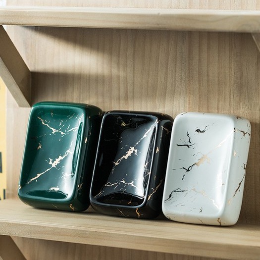 Nhà cửa & Đời sống > Đồ dùng phòng tắm > Kệ đựng xà phòng || [Sứ sáng bóng] Khay chữ nhật đựng xà bông nhà tắm bằng sức vân đá sang trọngCòn hàng