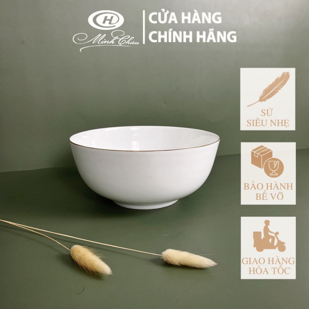 Giới thiệu [Sứ Siêu Nhẹ] Bát Tô Sứ Kiểu Hàn Viền Vàng 12K - Sứ Minh Châu