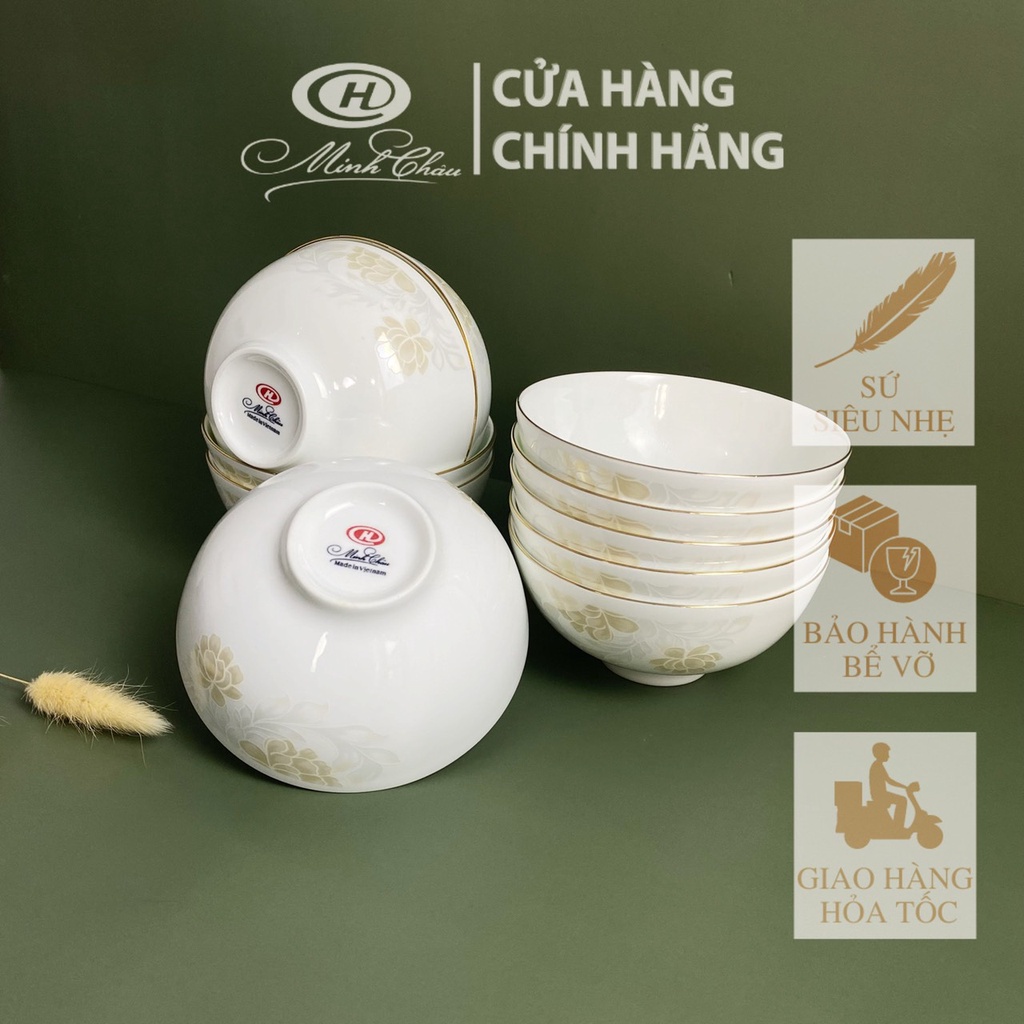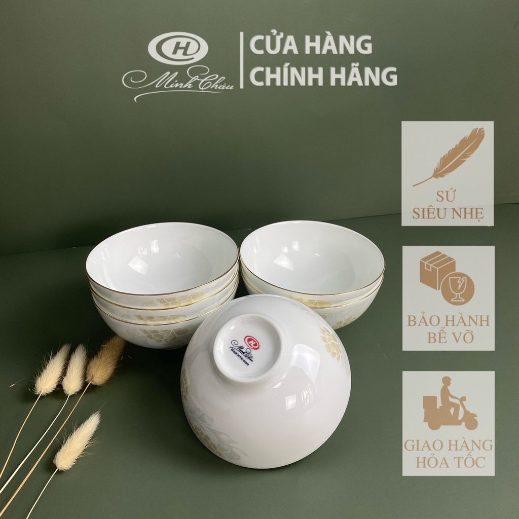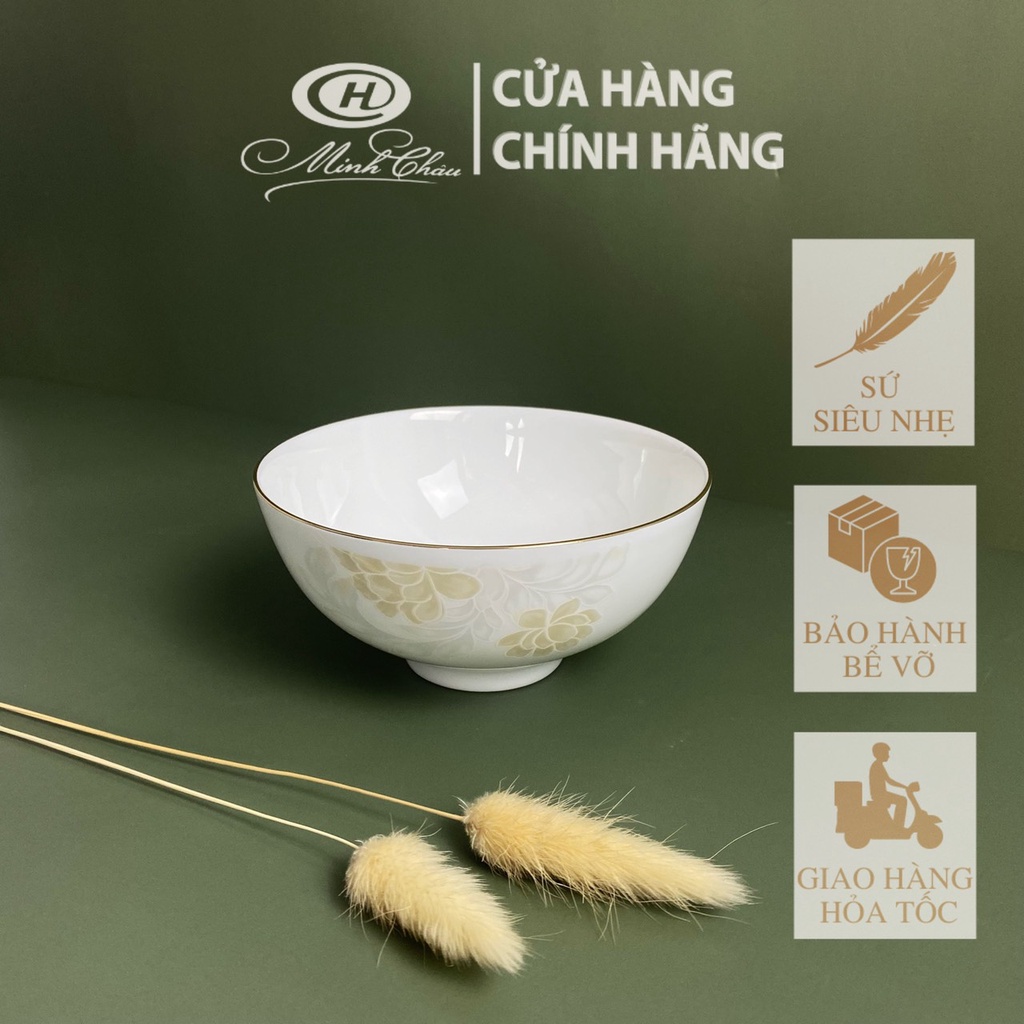 Giới thiệu [Sứ Siêu Nhẹ] Bộ Bát Ăn Cơm Sứ Xương Hoa Kẻ Vàng - Sứ Minh Châu