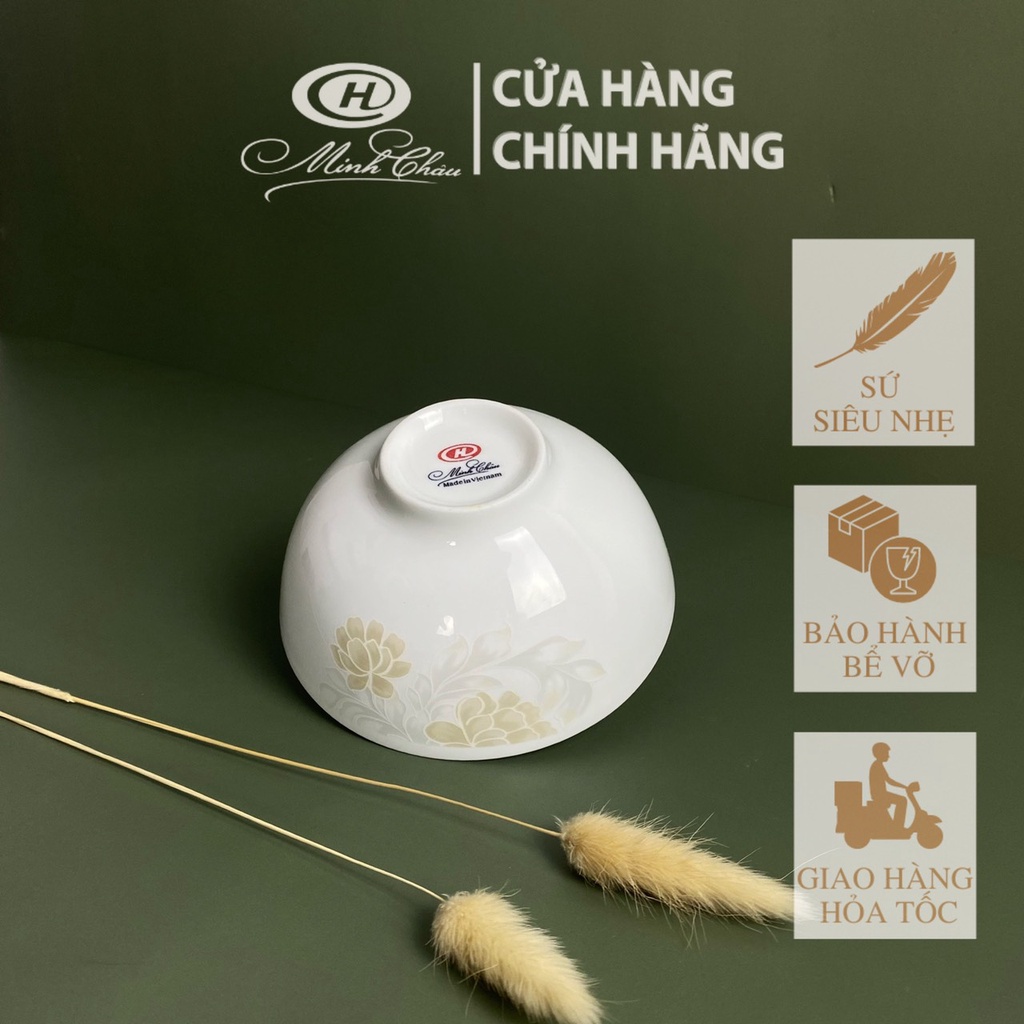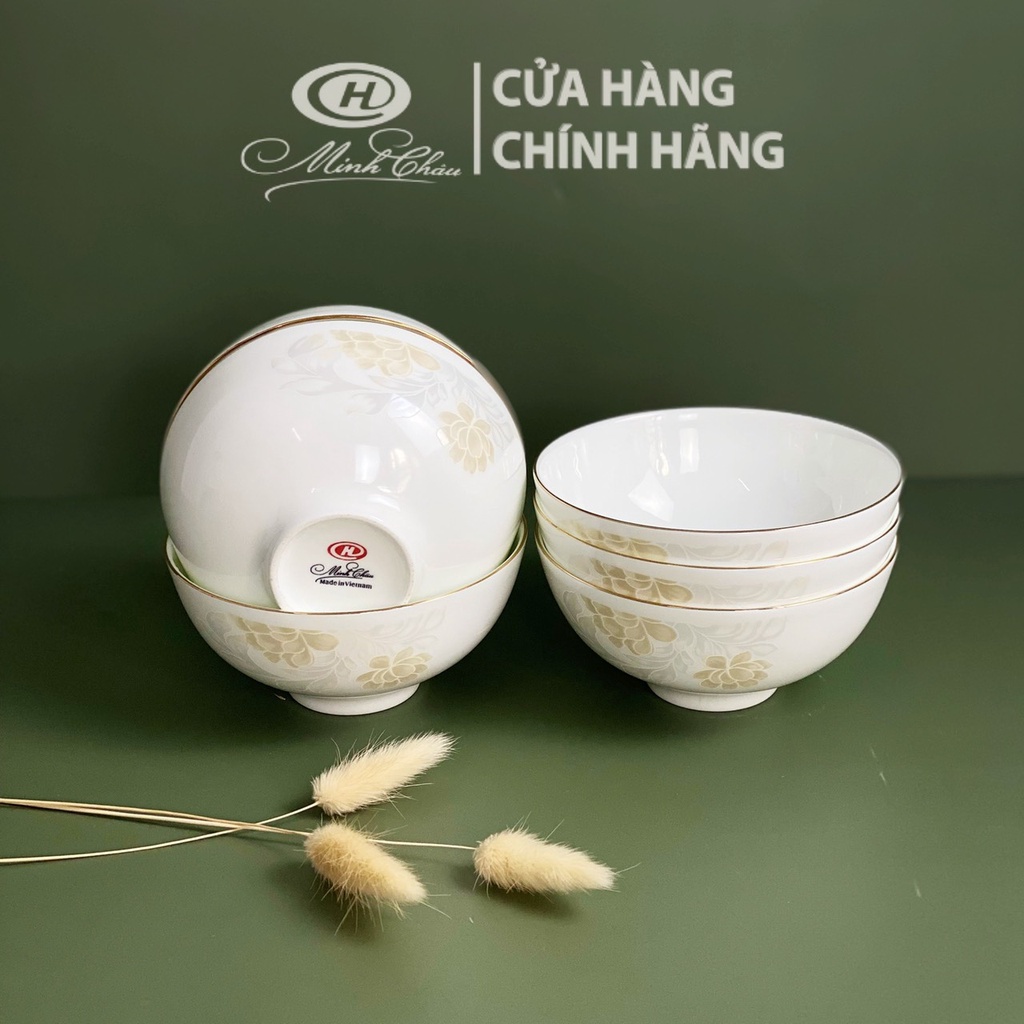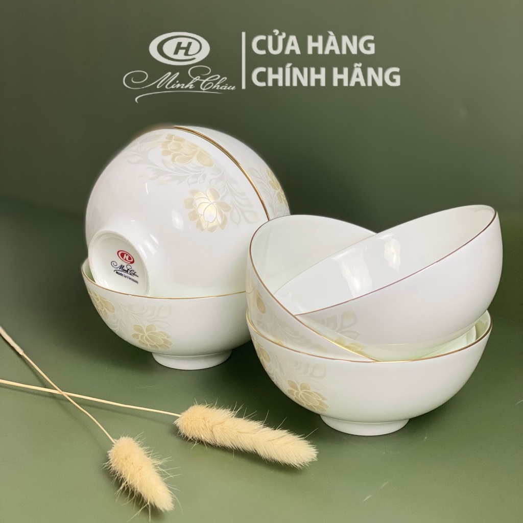 Giới thiệu [Sứ Siêu Nhẹ] Bộ Bát Ăn Cơm Sứ Xương Hoa Kẻ Vàng - Sứ Minh Châu