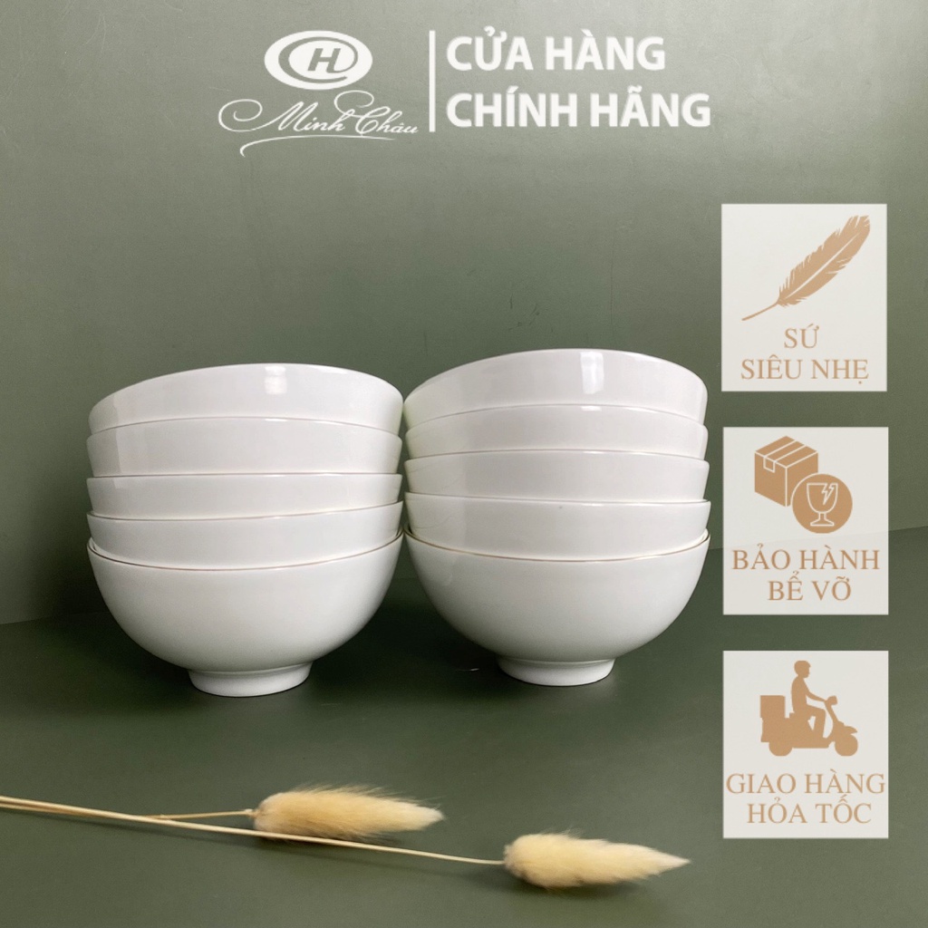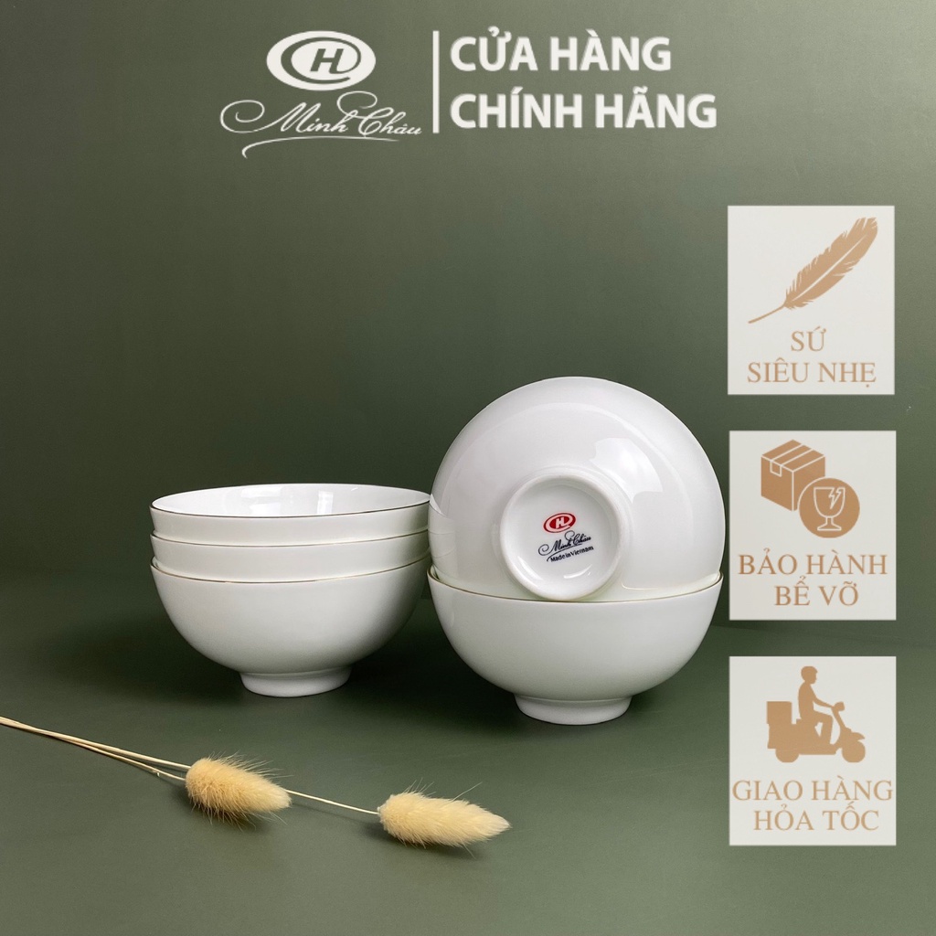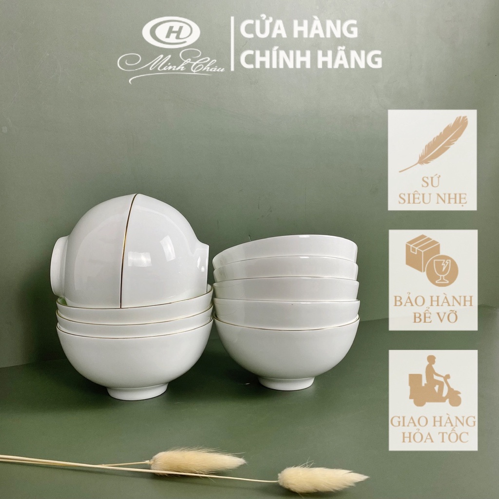 Giới thiệu [Sứ Siêu Nhẹ] Bộ Bát Cơm Sứ Xương Viền Vàng - C02 - Sứ Minh Châu