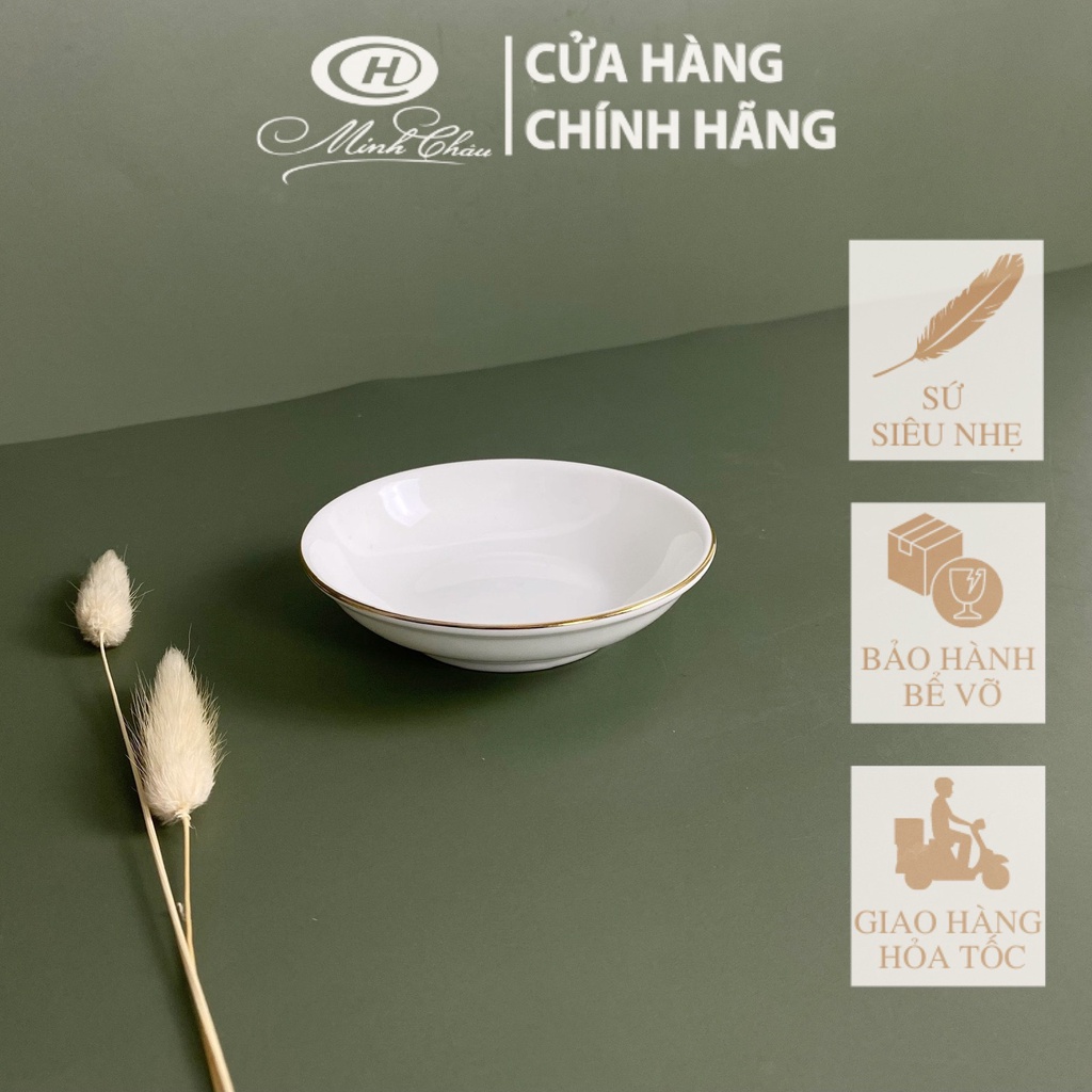[Sứ Siêu Nhẹ] Đĩa Chấm Sứ Viền Vàng 12K - Sứ Minh Châu