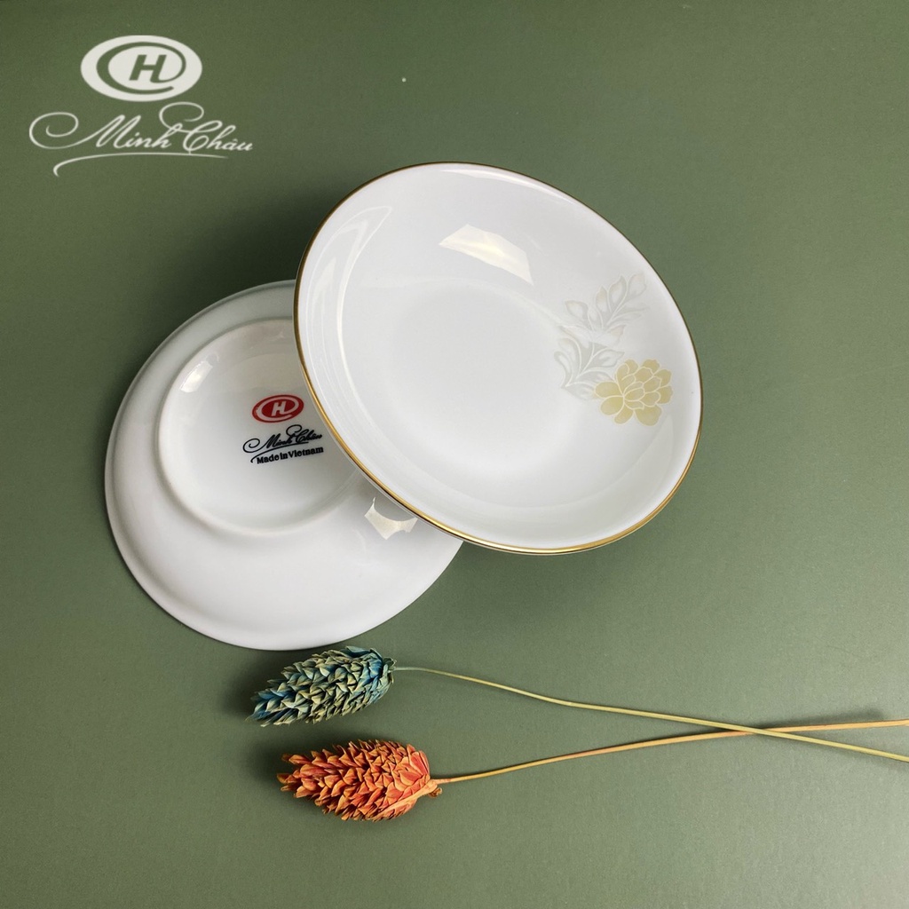Nhà cửa & Đời sống > Bộ đồ bàn ăn > Dĩa || [Sứ Siêu Nhẹ] Đĩa Chấm Sứ Xương Hoa Kẻ Vàng - Sứ Minh Châu - Bone-D02KVHCòn hàng