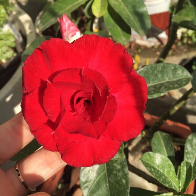 Cây sứ thái ghép hoa kép đỏ,cây đang rất nhiều nụ,cây khỏe gốc to,cây rất thường xuyên cho hoa,hoa quanh năm,hoa to đẹp,bung điều.Giá XCRX