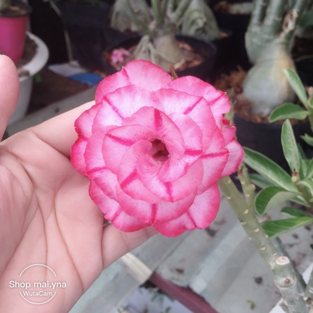 Cây sứ thái ghép hoa cánh kép tên vân huế.Gửi cây như hình,cây đang rất nhiều nụ & hoa,gốc to khoảng 1,5kg