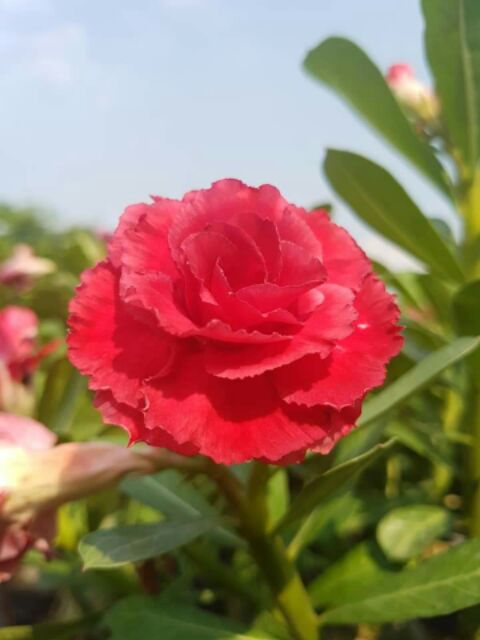 Cây sứ thái kép - ghép hoa đỏ nhung là loại cánh hoa dầy màu đỏ tươi cây ra hoa quanh năm,hoa có mùi thơm dịu.Giống tốt củ to,cây rất dễ trồng,ít tốn công chăm sóc.
